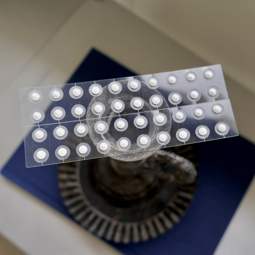 스티커 뒷면에 부착된 *미세한 침(醫鍼)*이