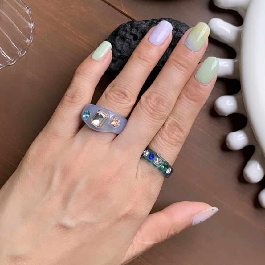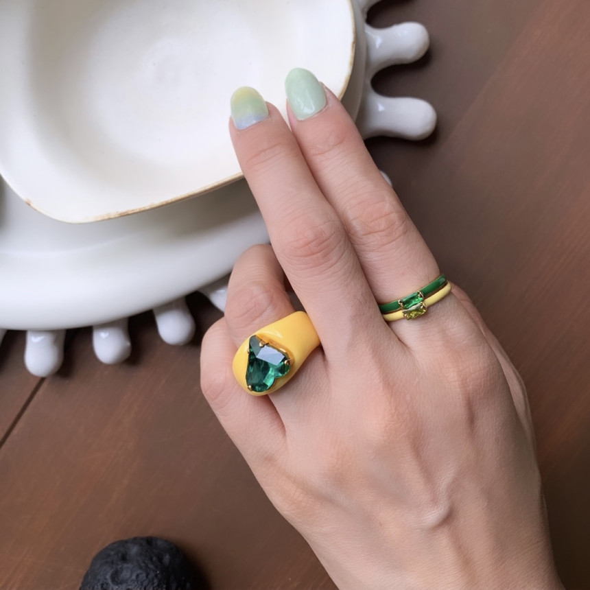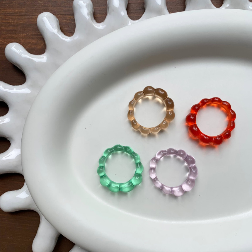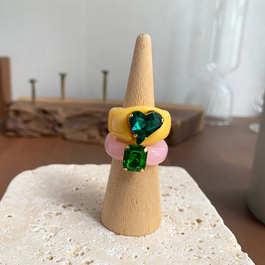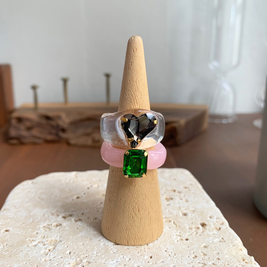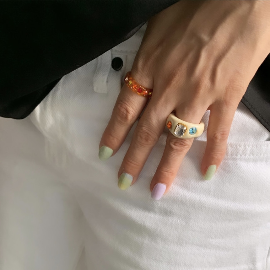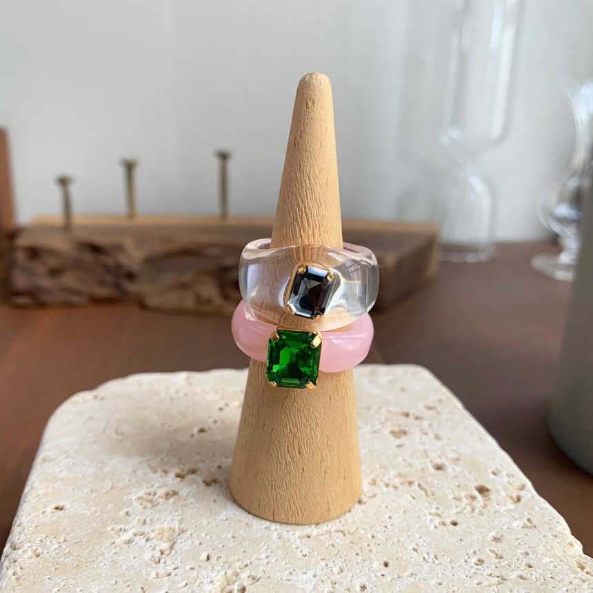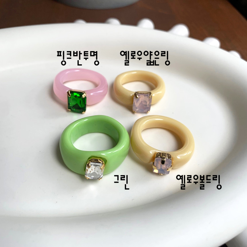 그린/옐로우얇은링/옐로우볼드링/핑크반투명