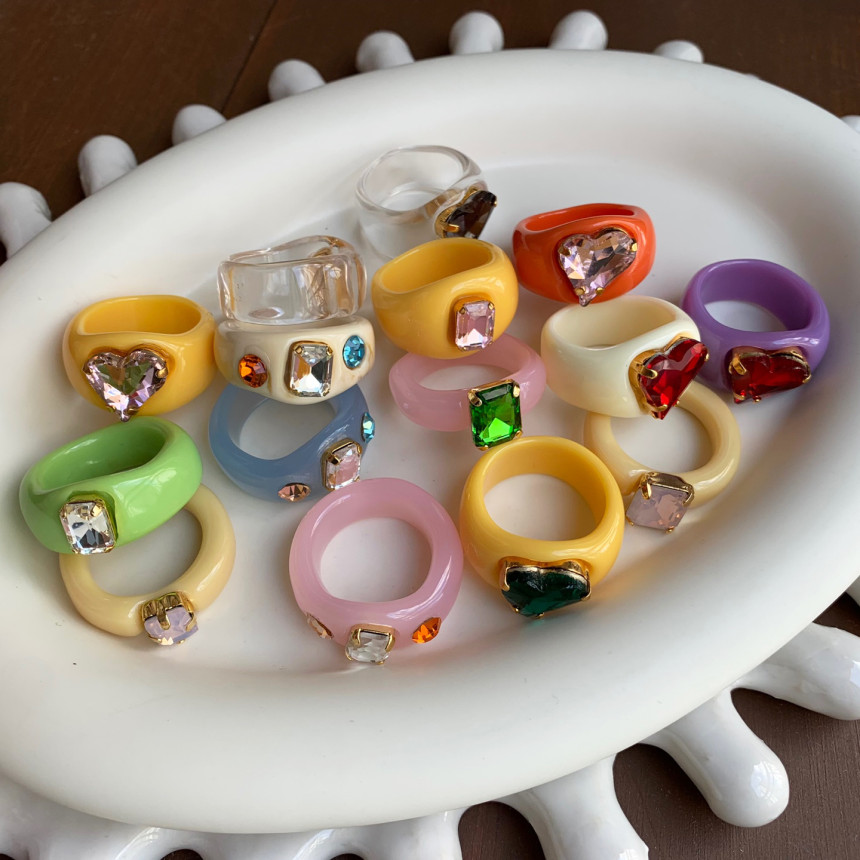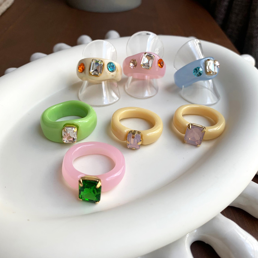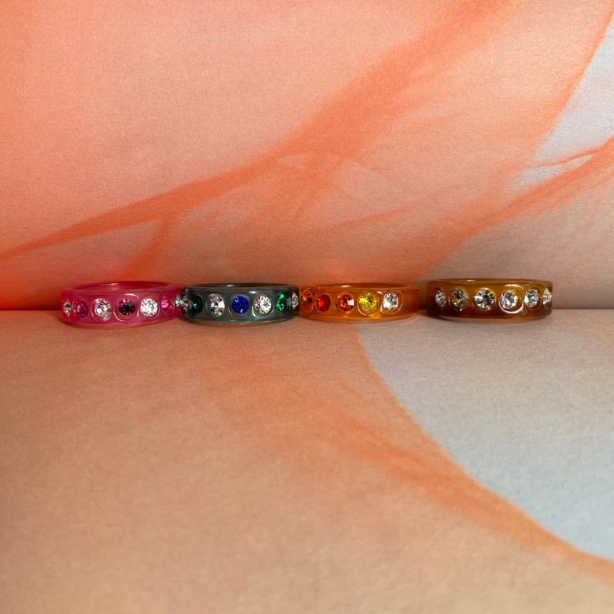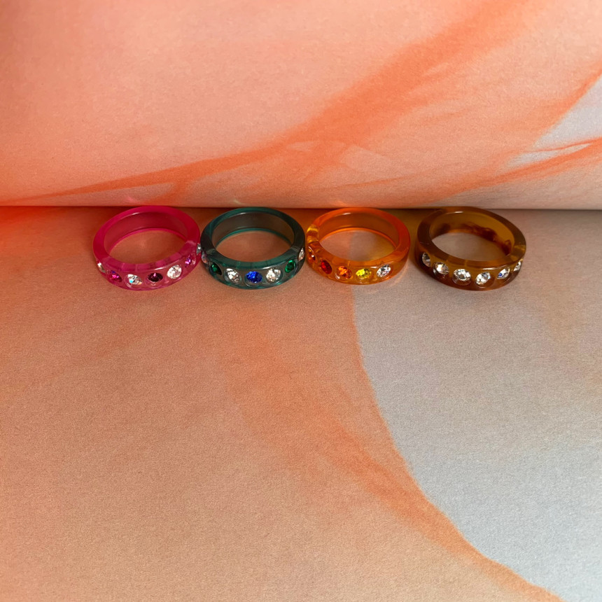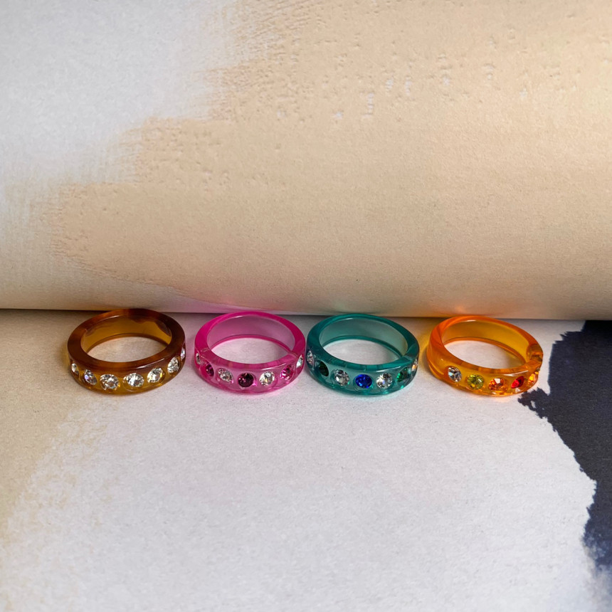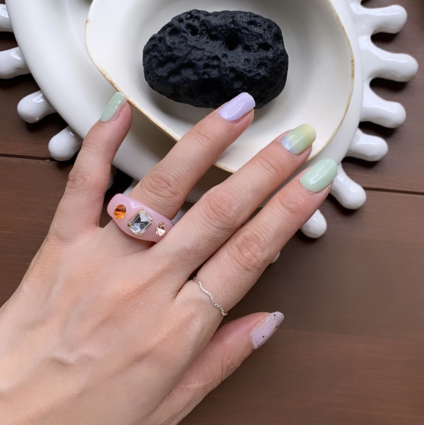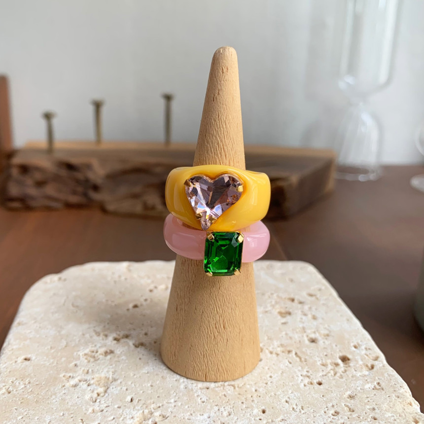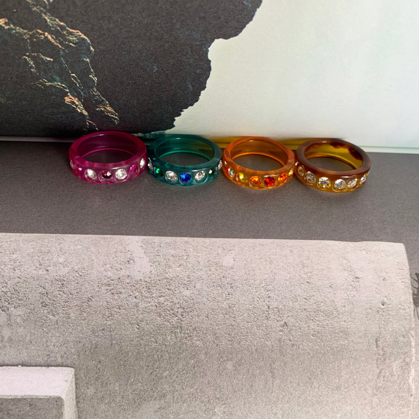 그린/옐로우얇은링/옐로우볼드링/핑크반투명