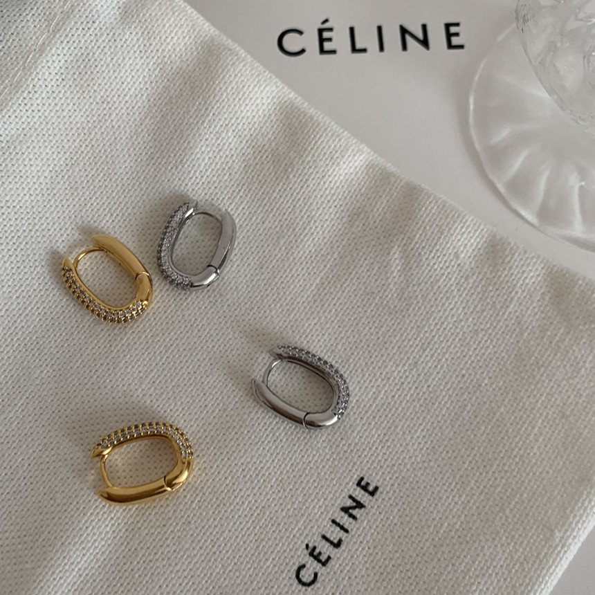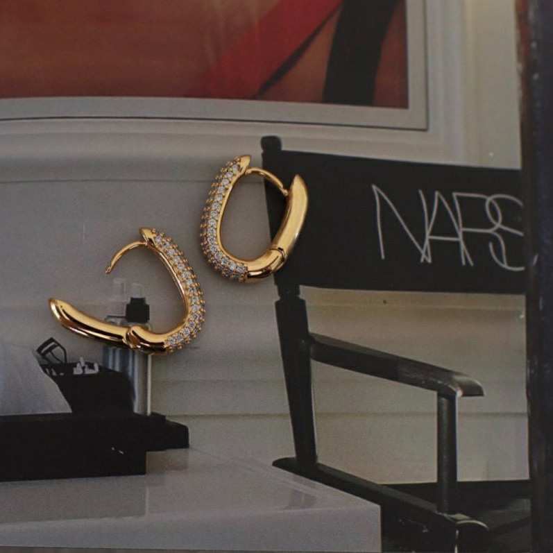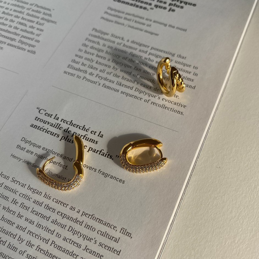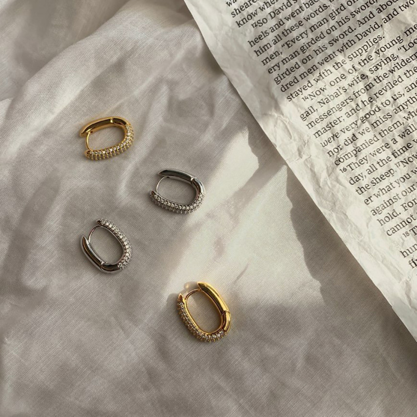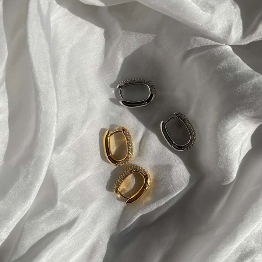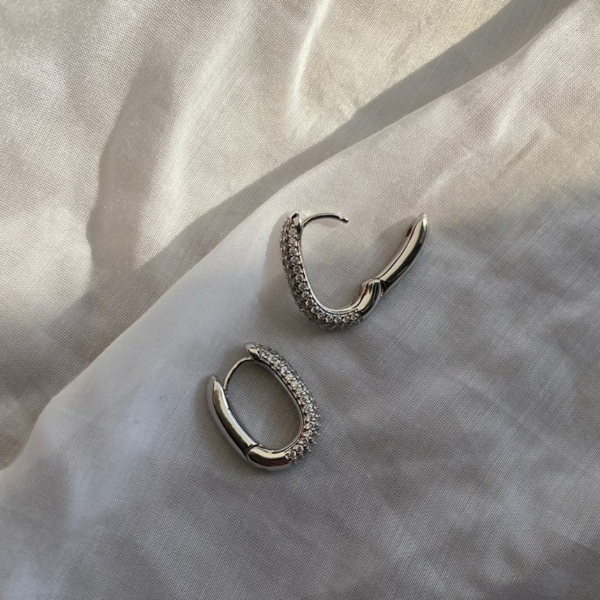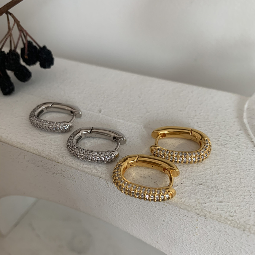 알알이 박힌 사각링 귀걸이를