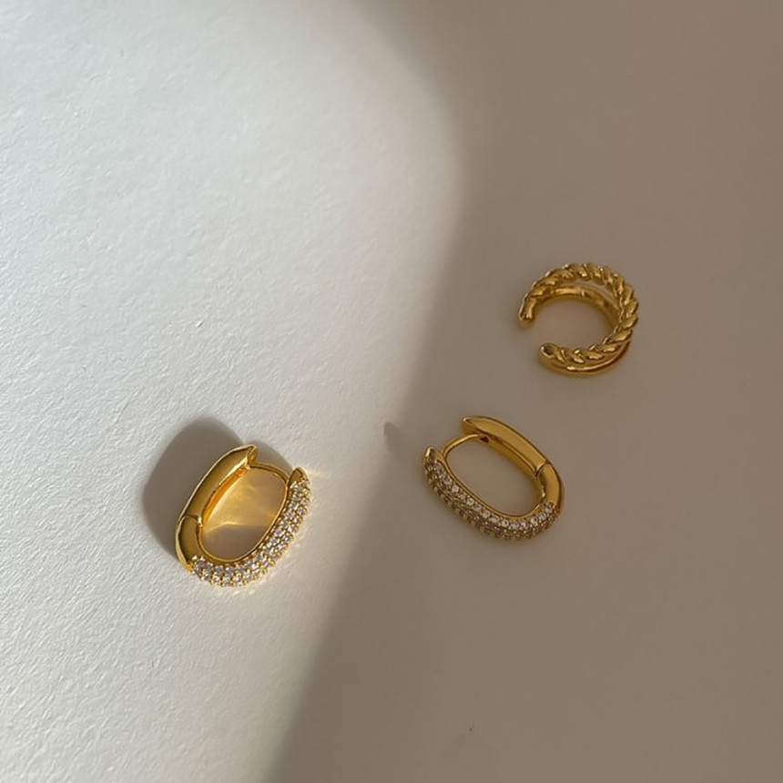 추가 구매상품 2. 큐빅 사각링귀걸이 착장
