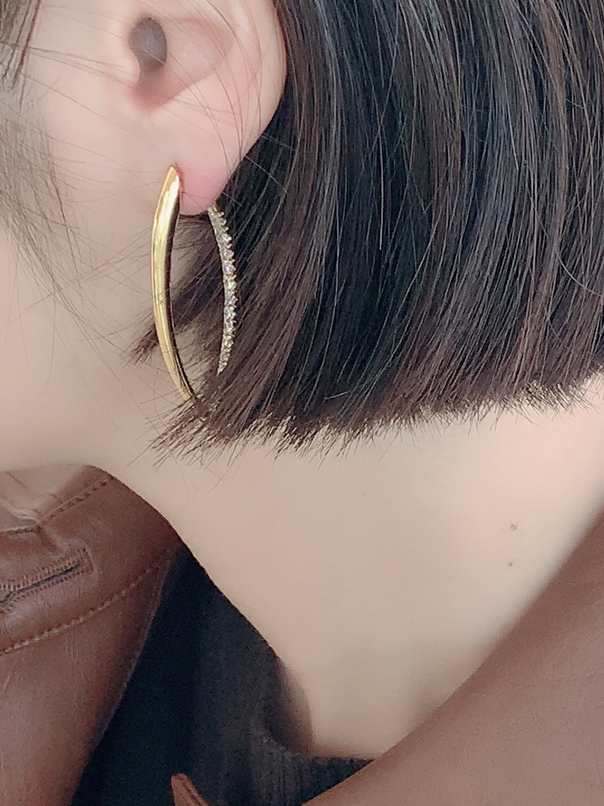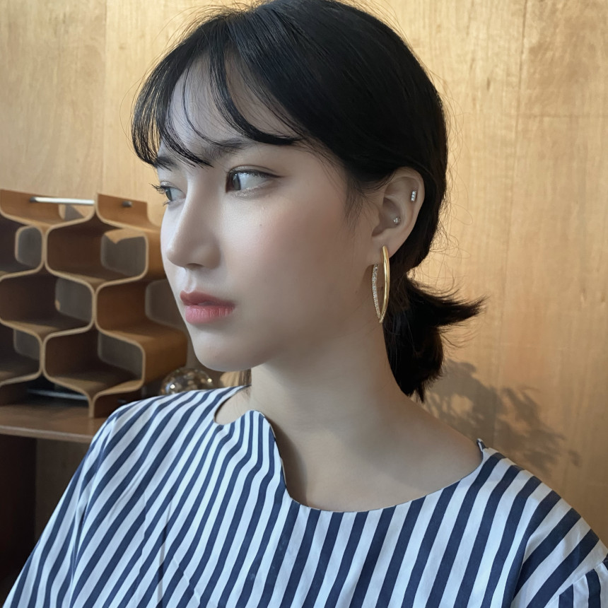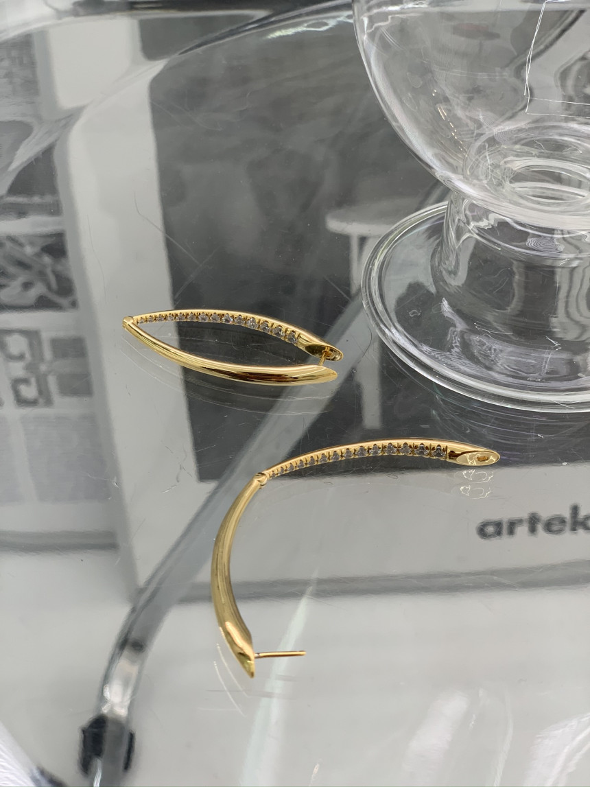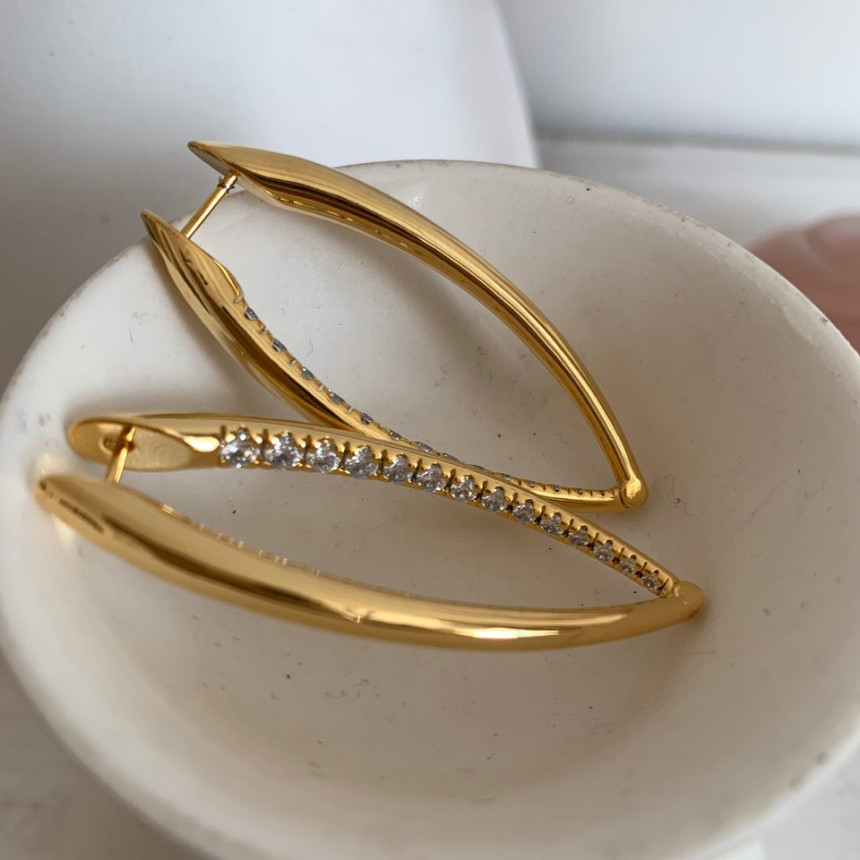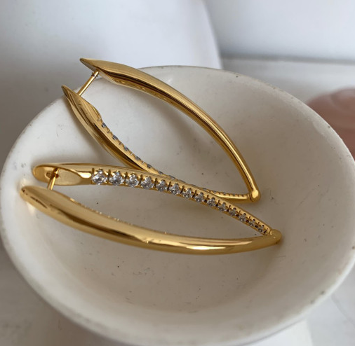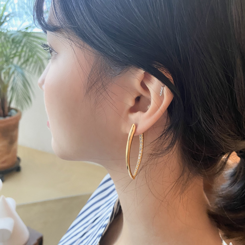 18K 골드 도금한 브론즈 소재로 뽀족한 타원형의 후프 형태의