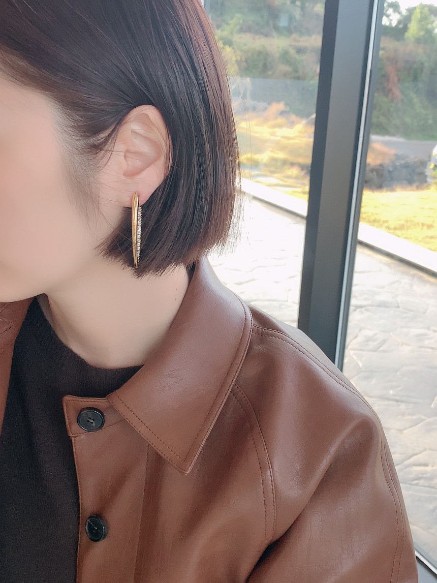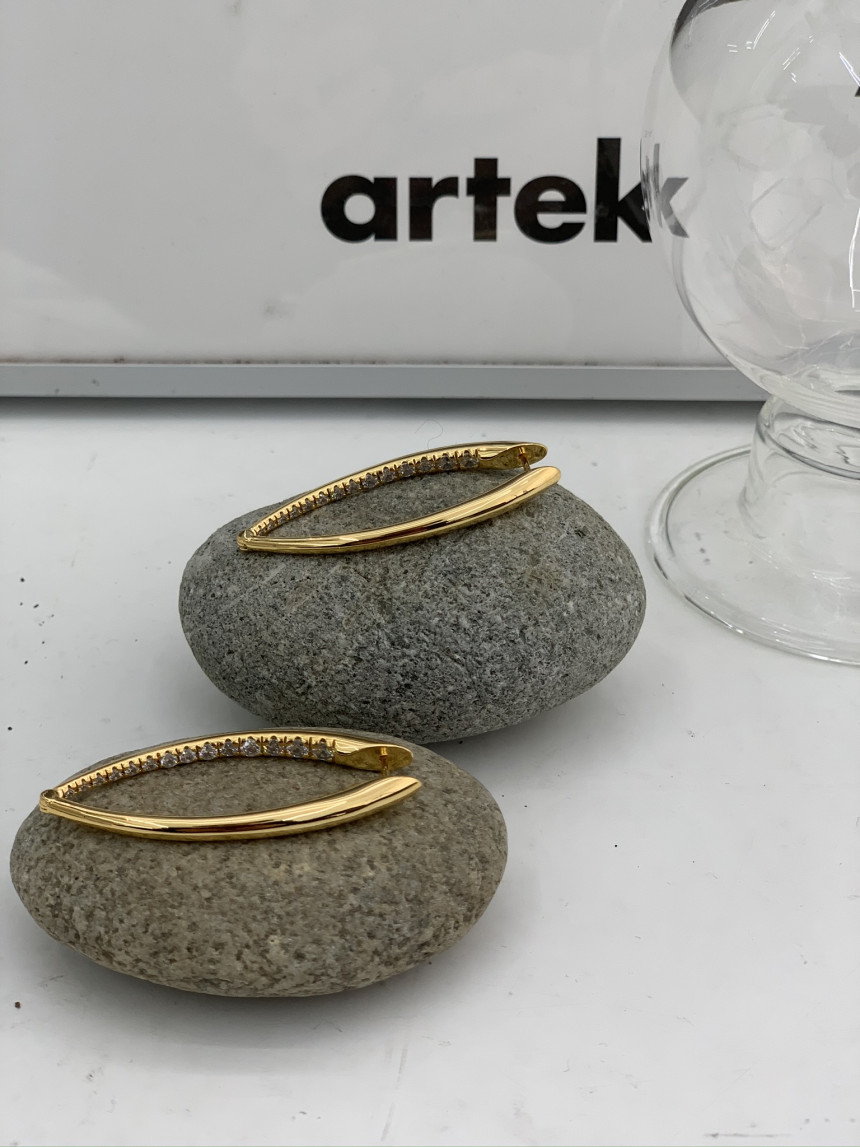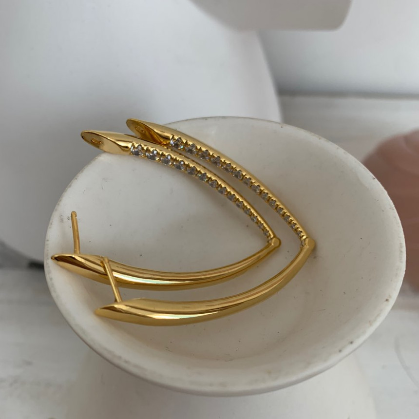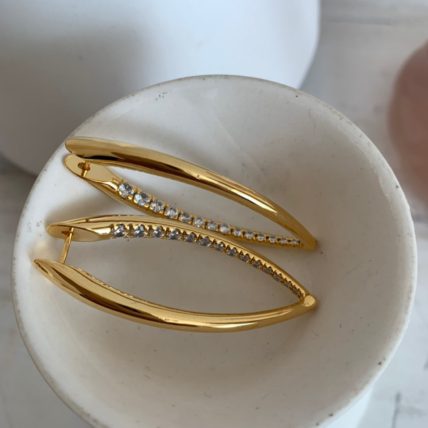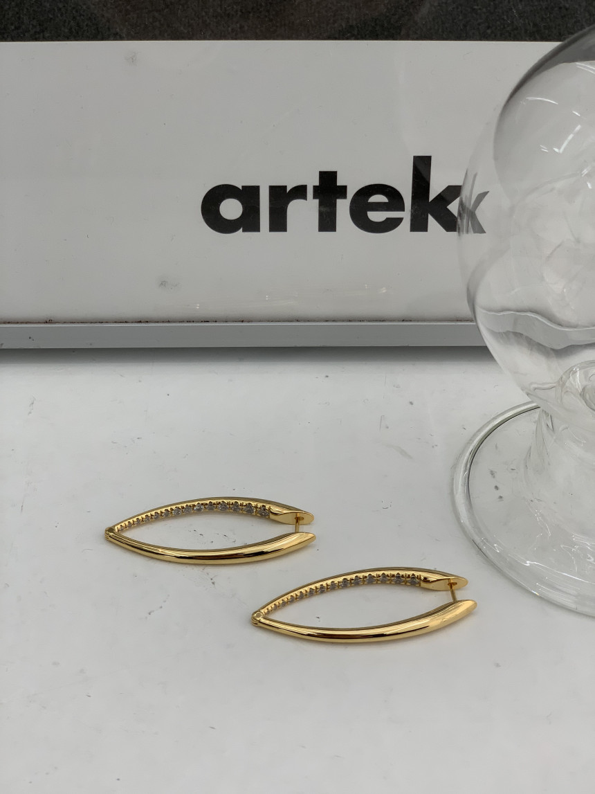 18K 골드 도금한 브론즈 소재로 뽀족한 타원형의 후프 형태의