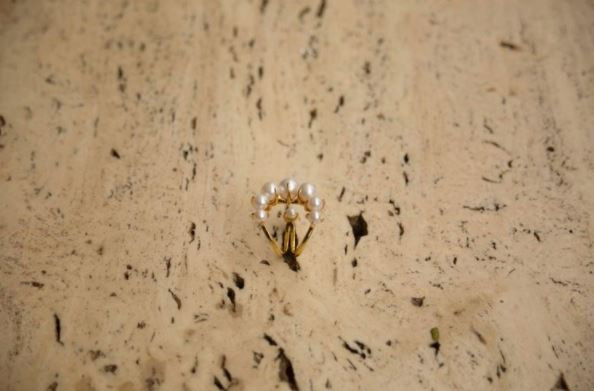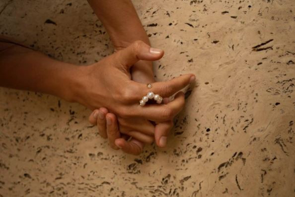 양옆 진주를 옆으로 벌려 손가락 사이즈에 맞게
