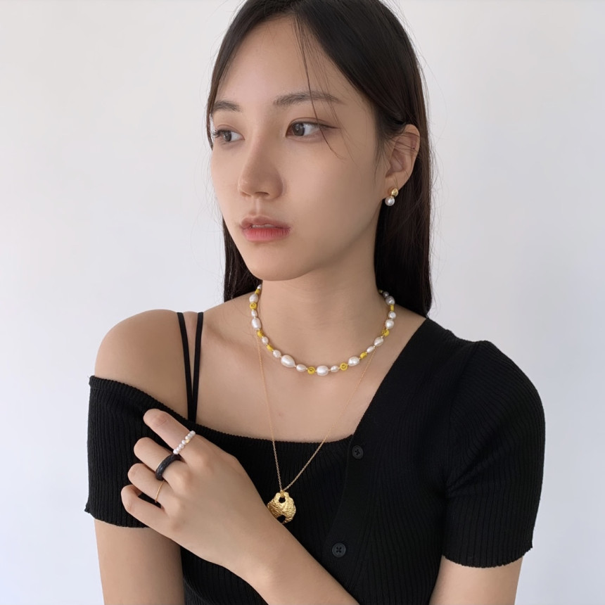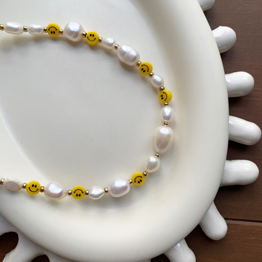 Yellow Smile Pearl Bead Necklace