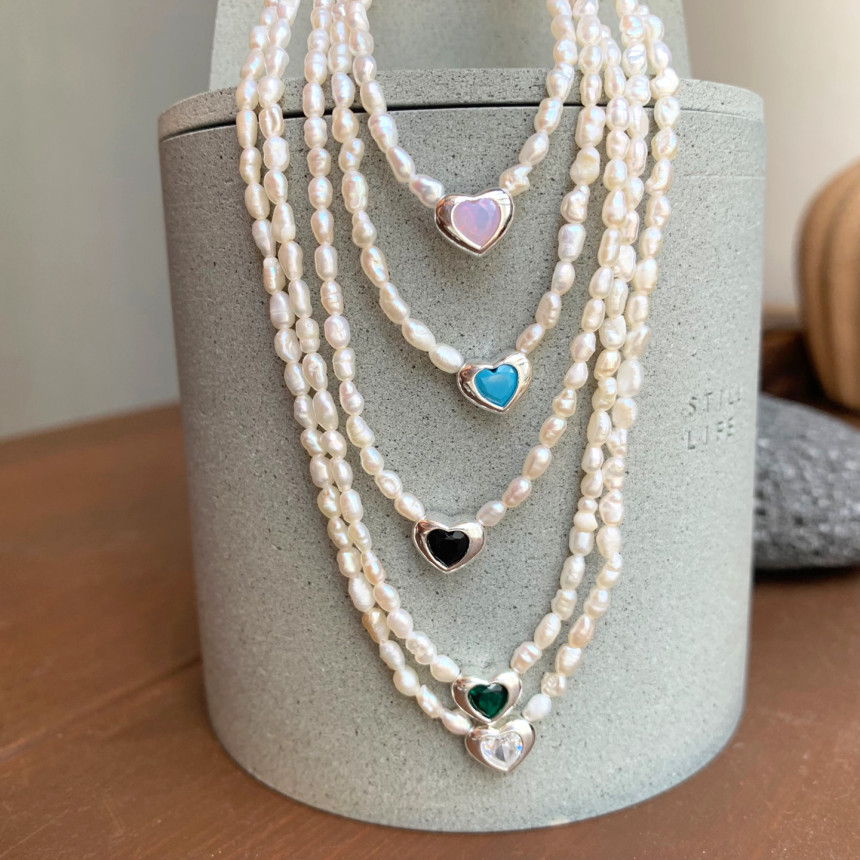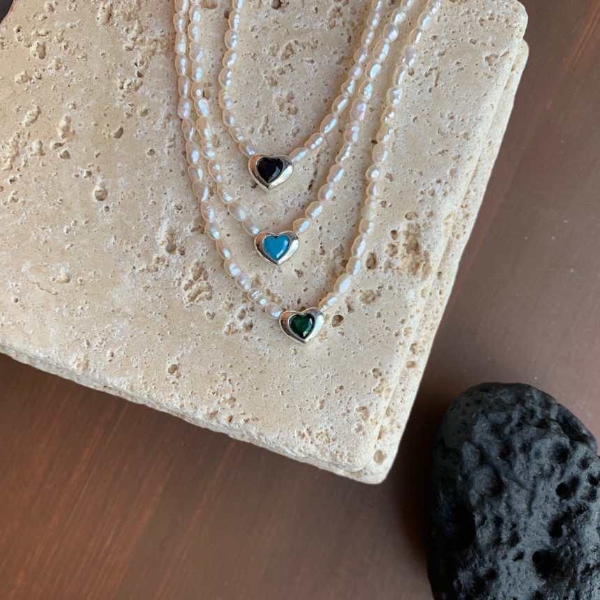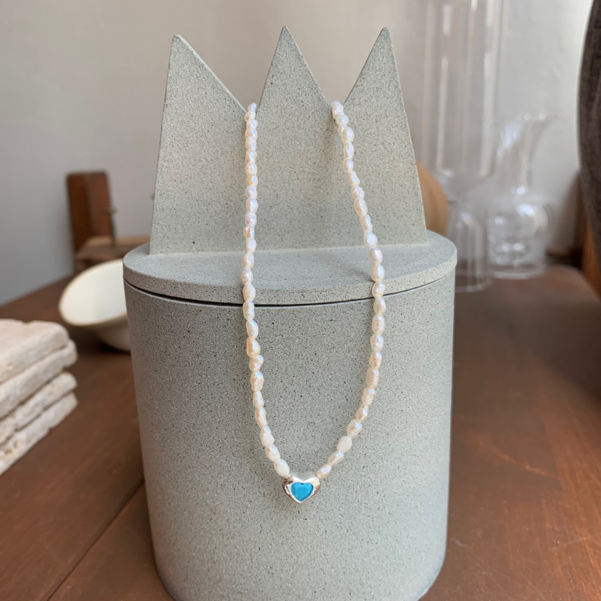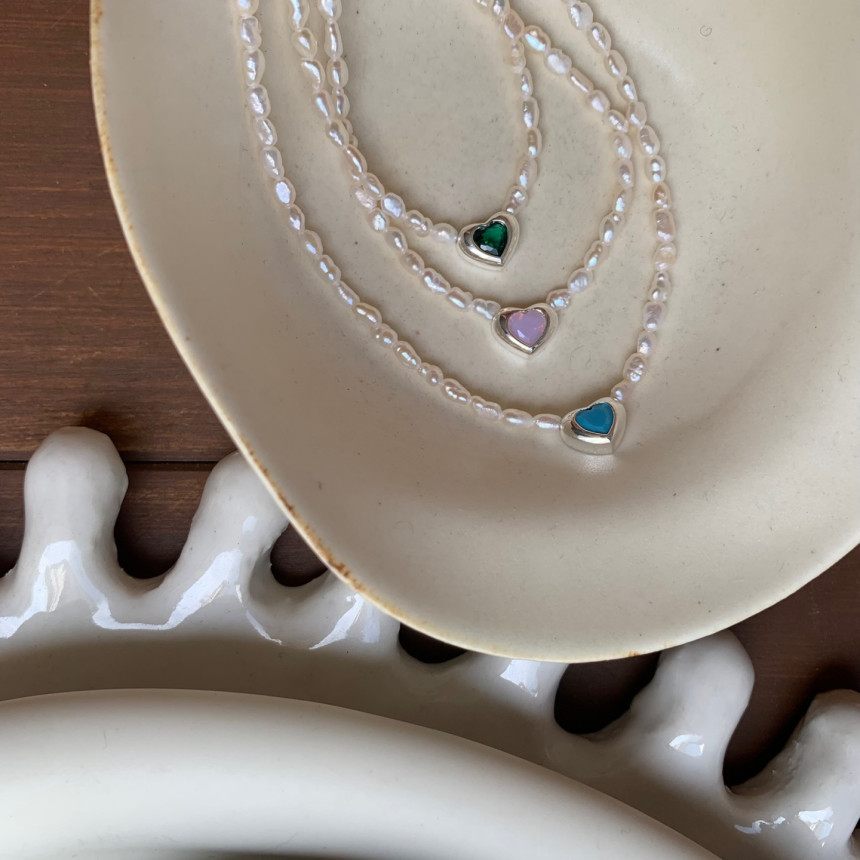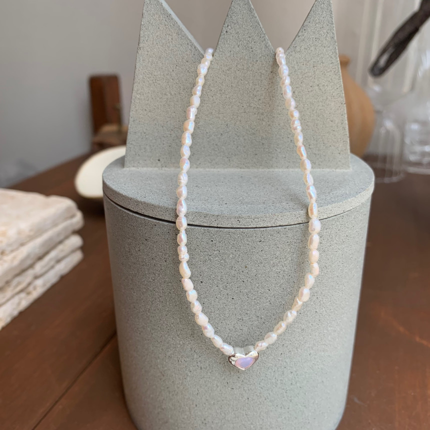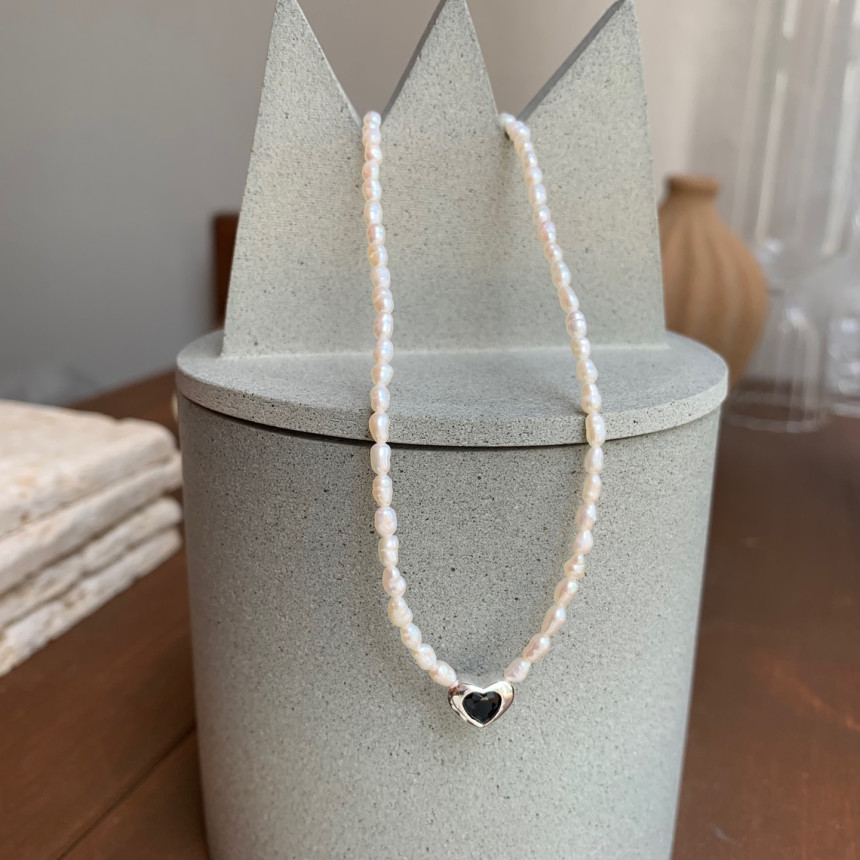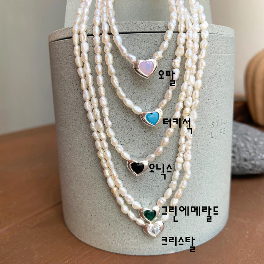 구여름 하트 원석 펜던트 담수진주 목걸이