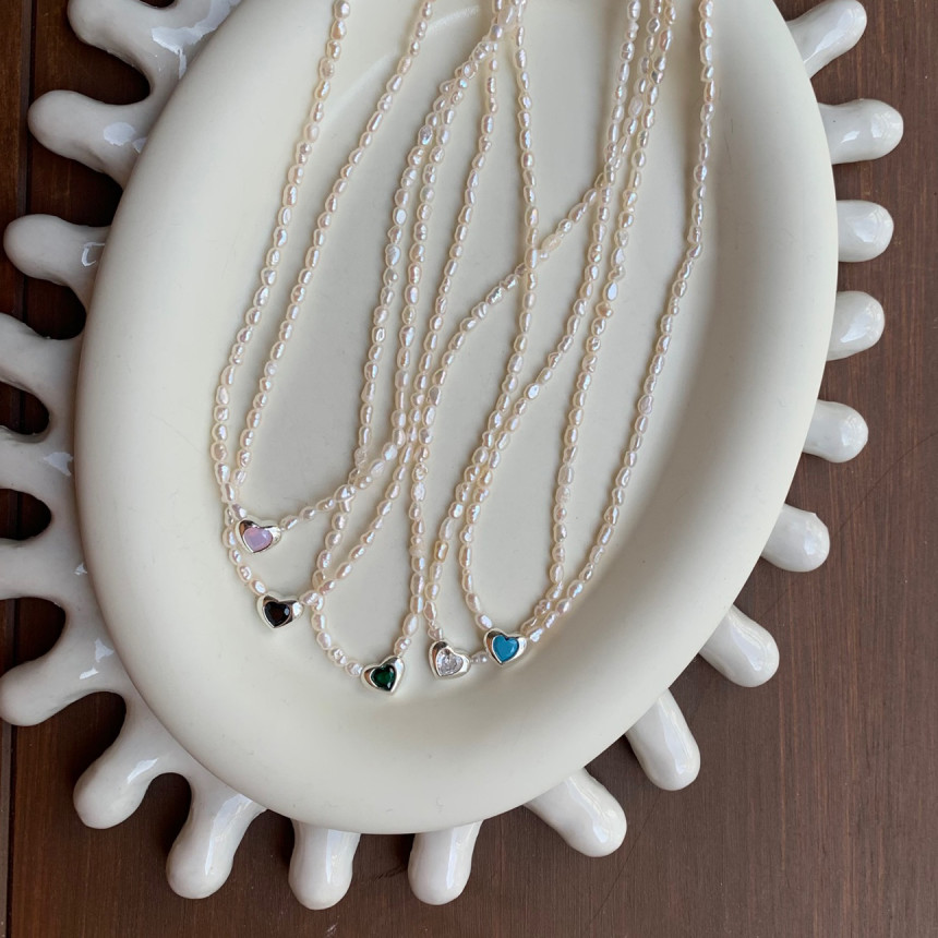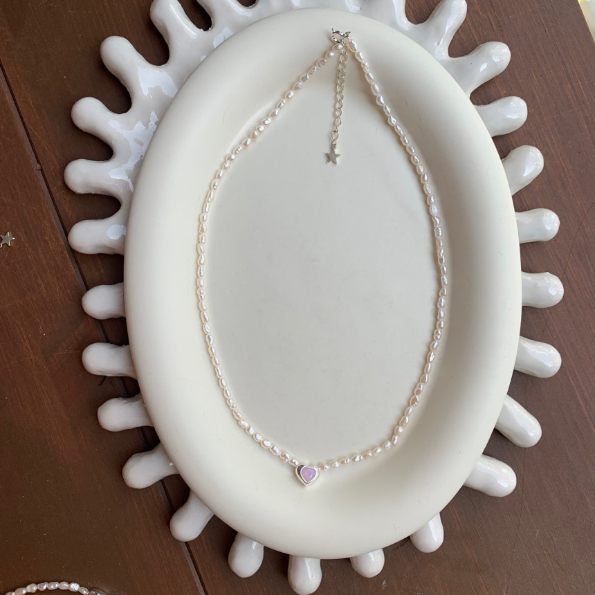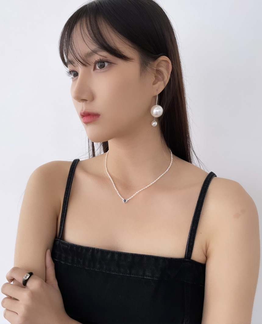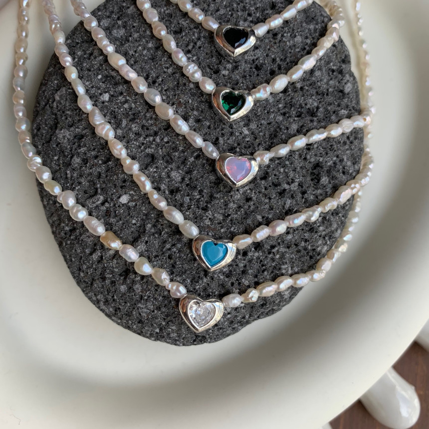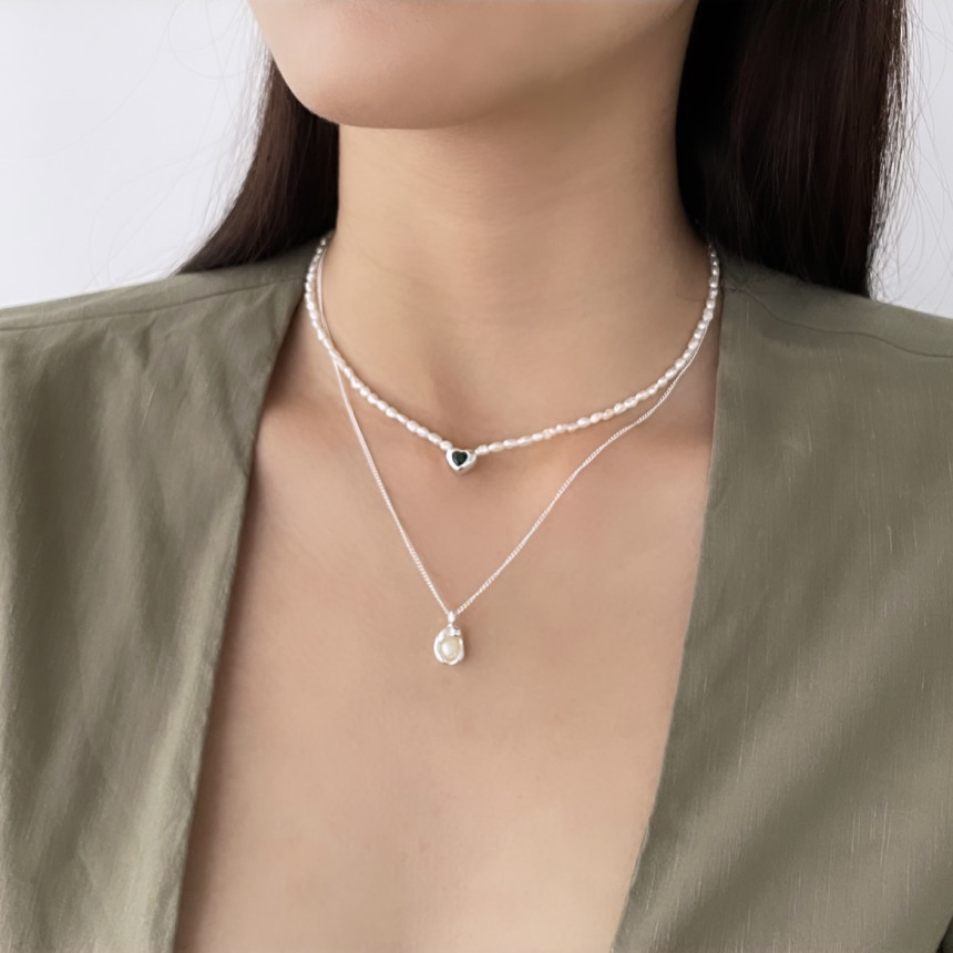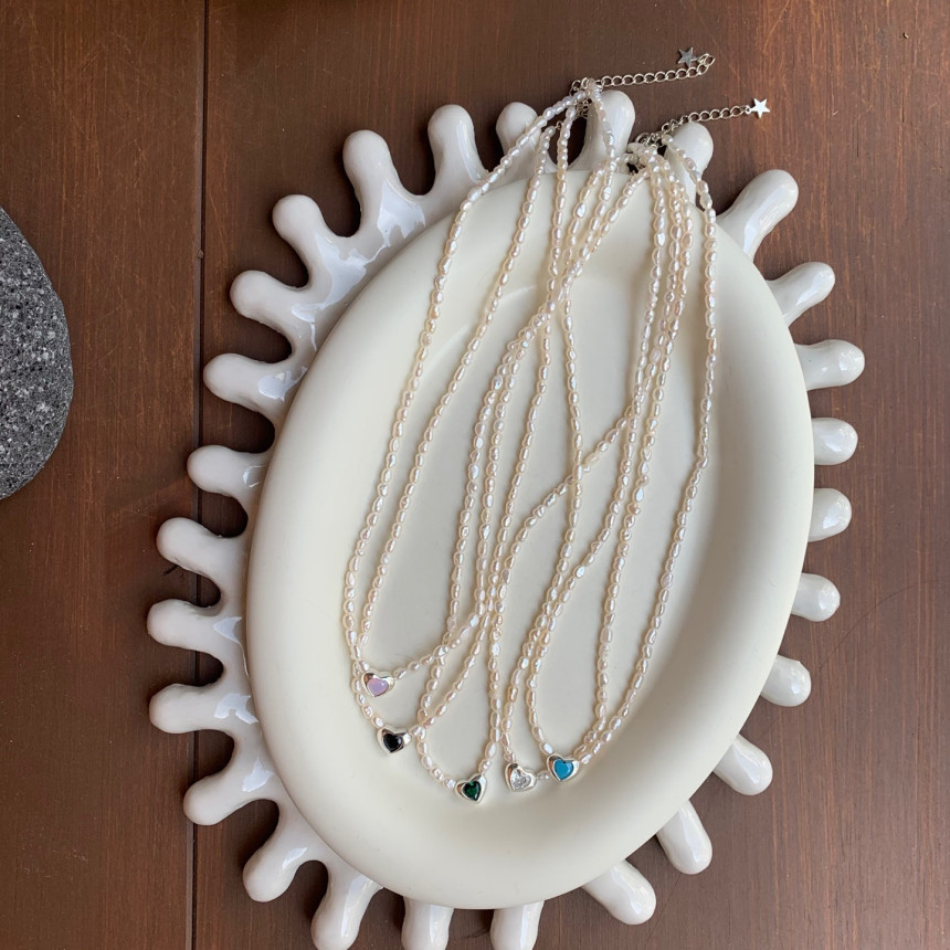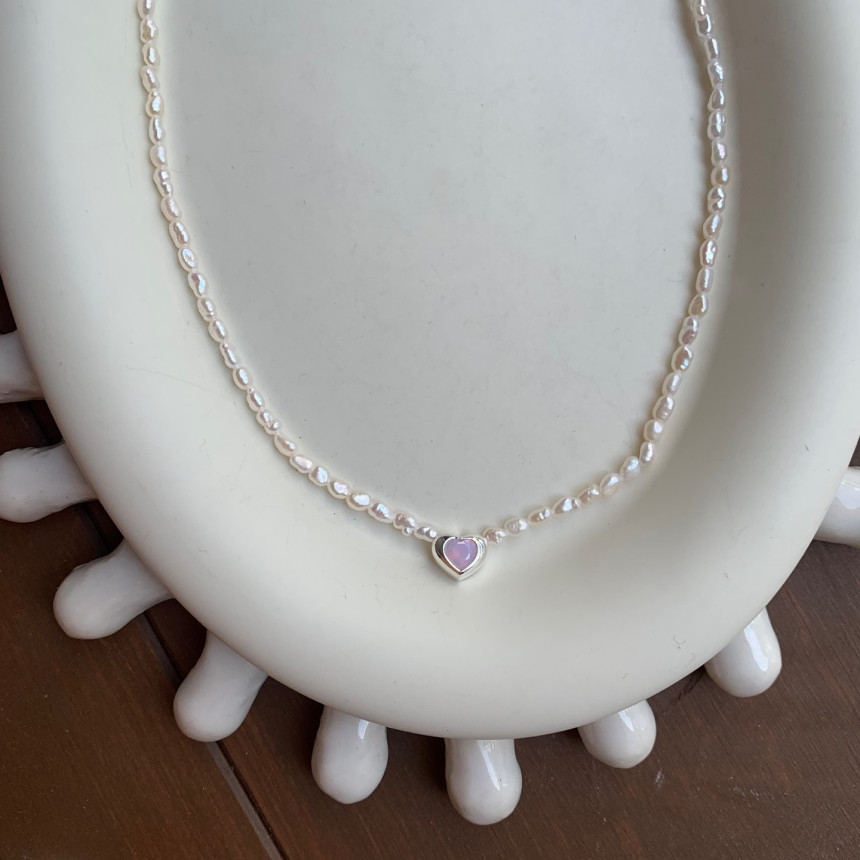 구여름 하트 원석 펜던트 담수진주 목걸이