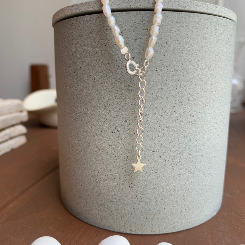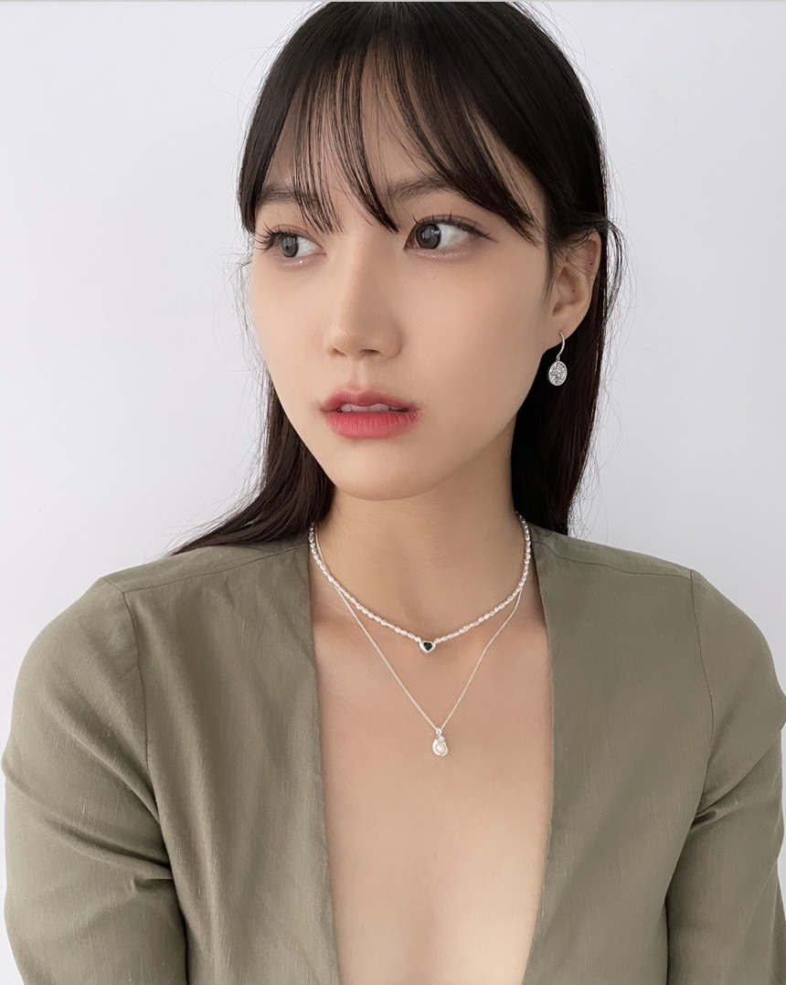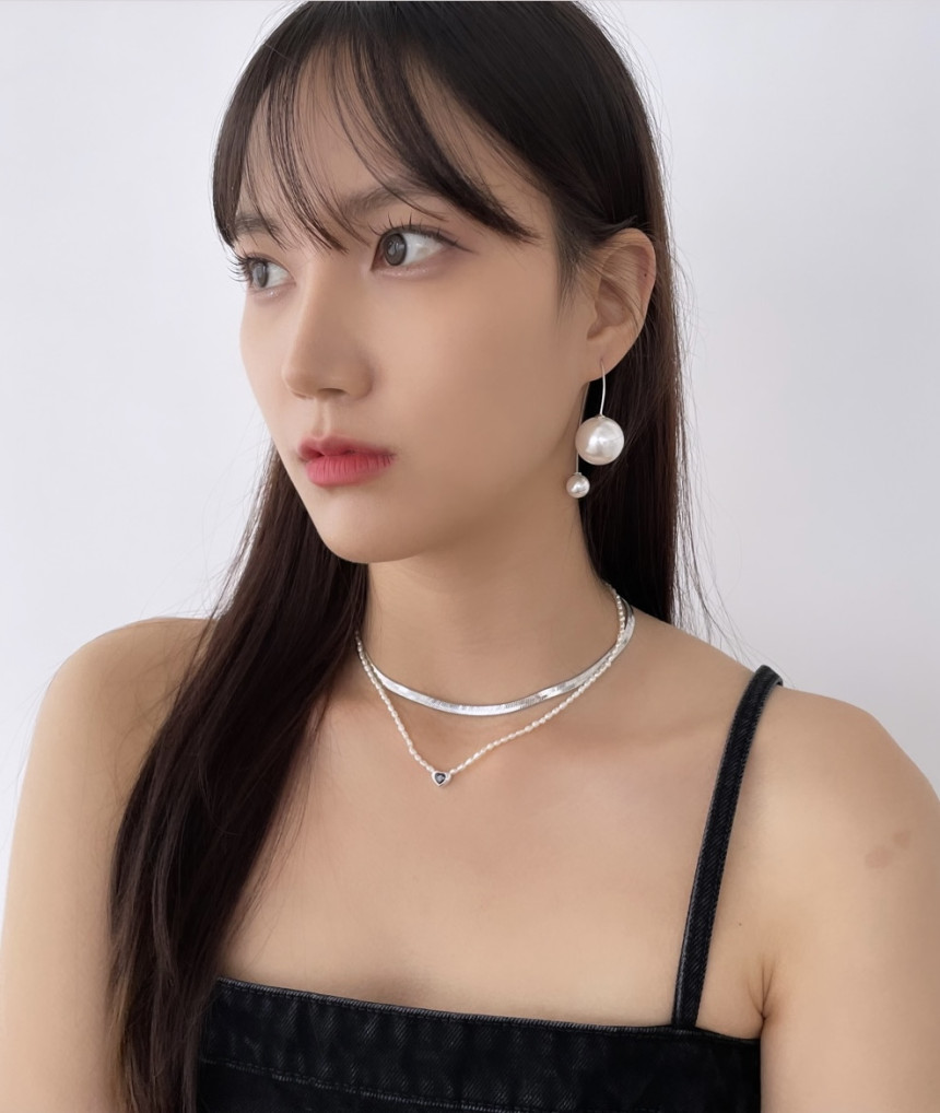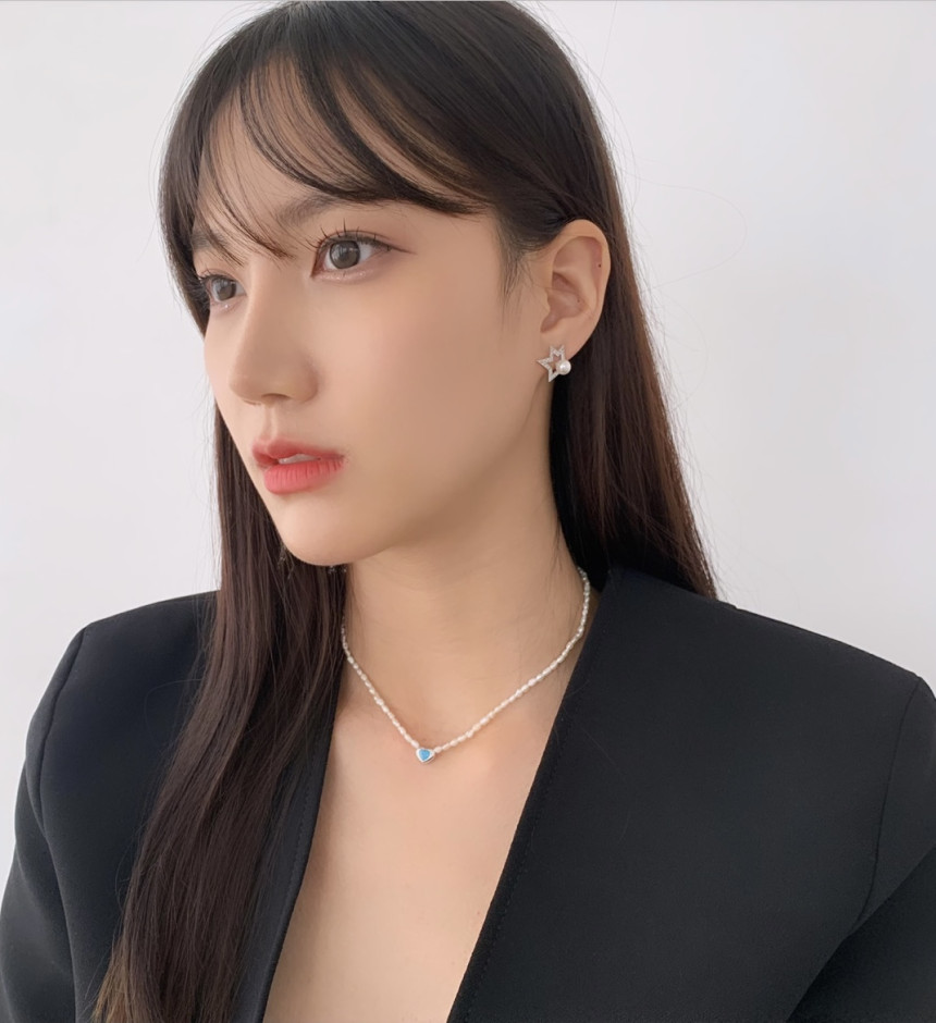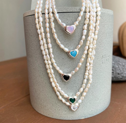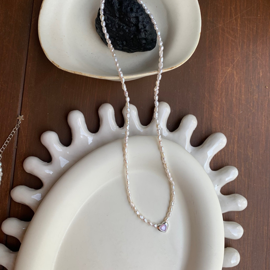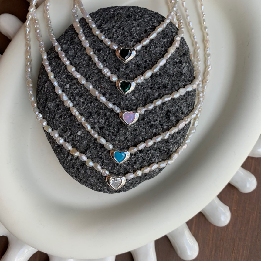 구여름 하트 원석 펜던트 담수진주 목걸이