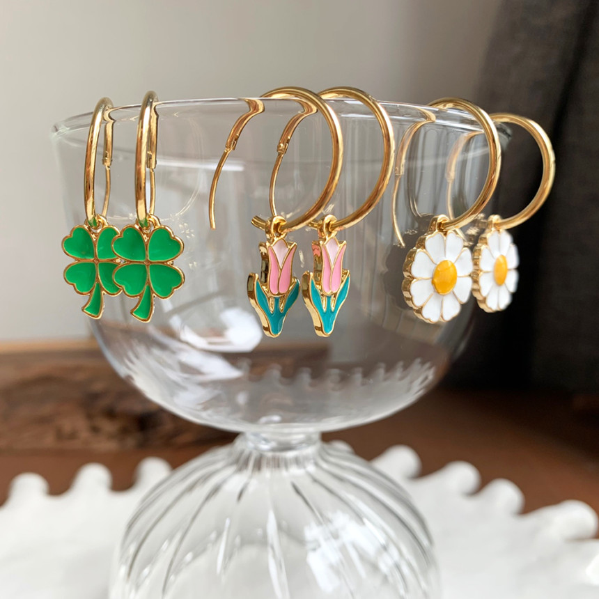 귀걸이 미듐 _ 데이지/튤립/네잎클로버