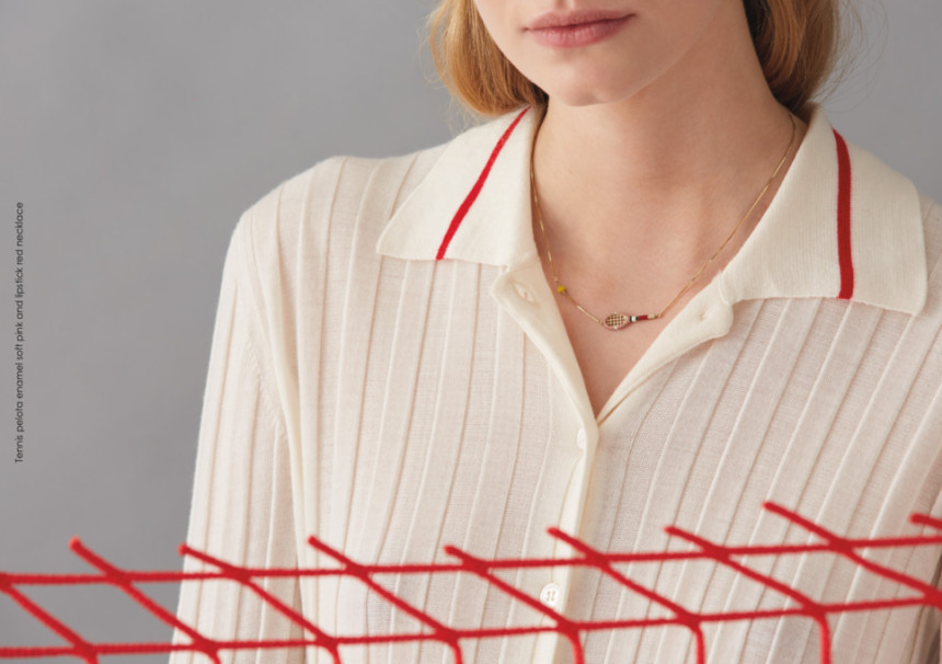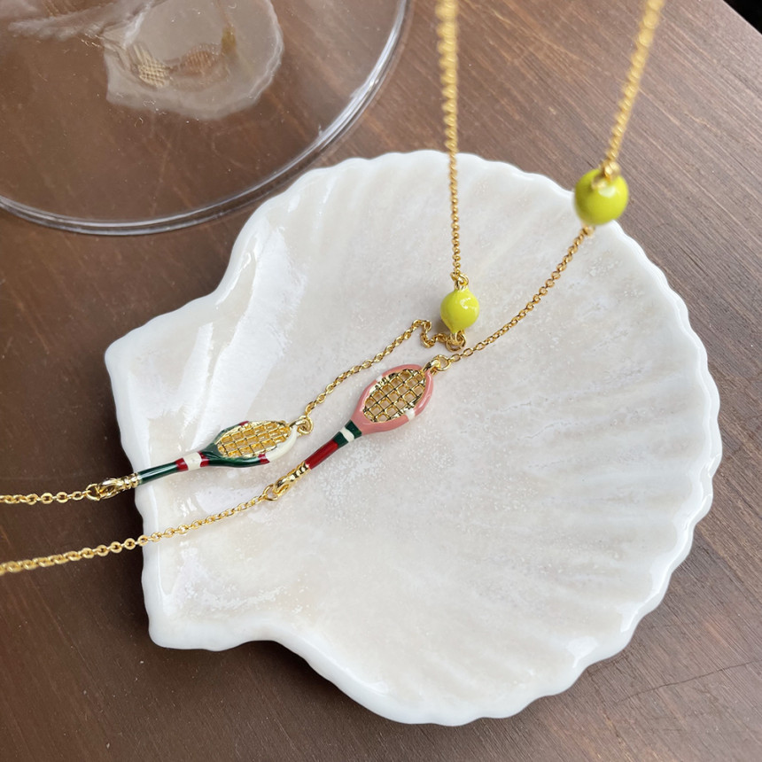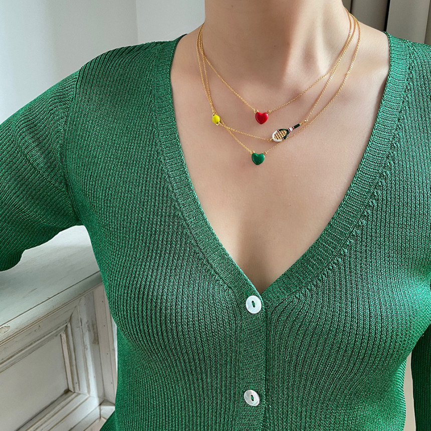 하트레드 +테니스라켓 목걸이_그린 목걸이와 연출
