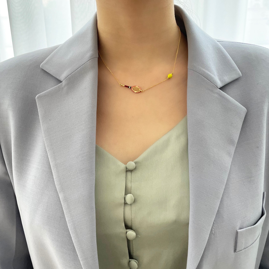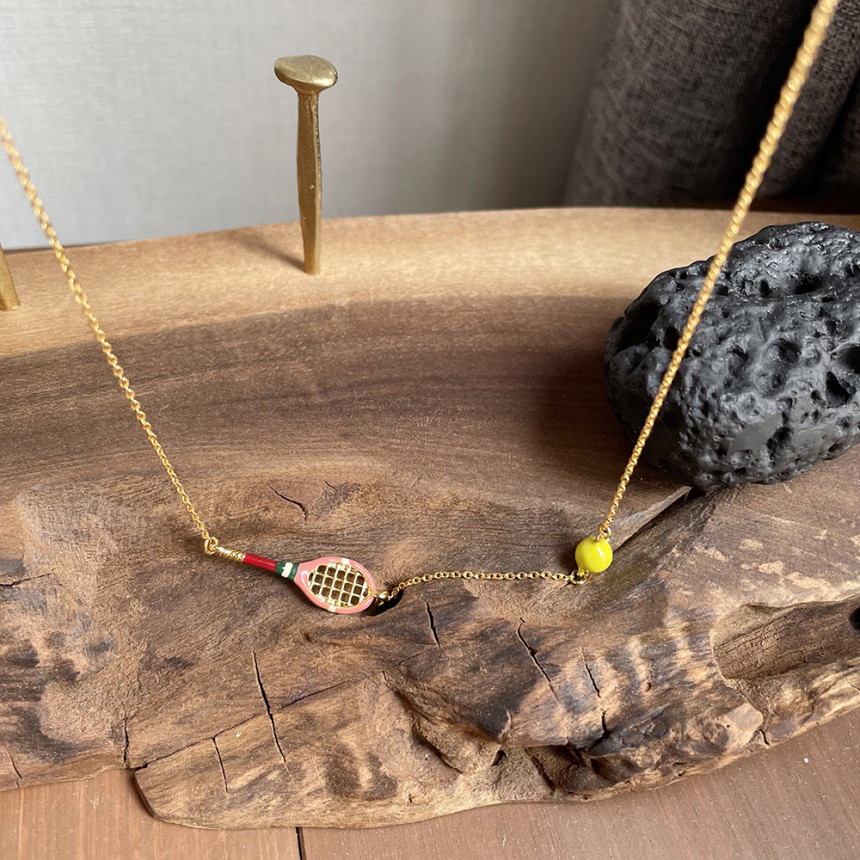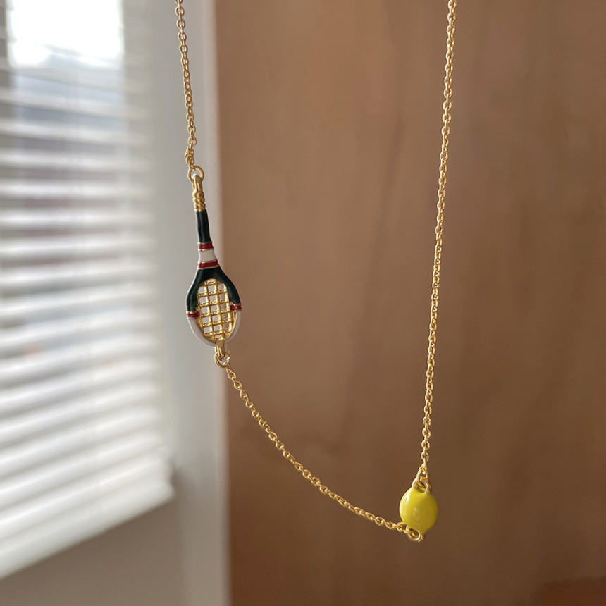 하트네이비 +테니스라켓 _핑크 목걸이와 연출