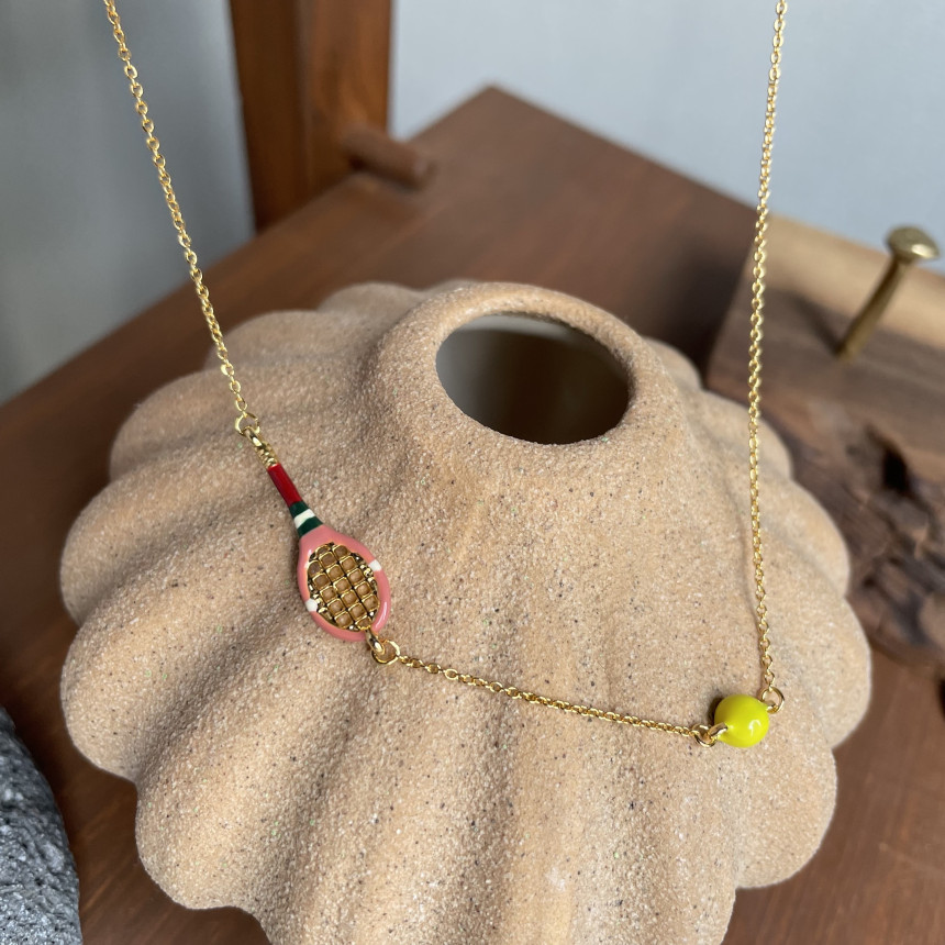 하트핑크 +테니스라켓 _핑크 목걸이와 연출