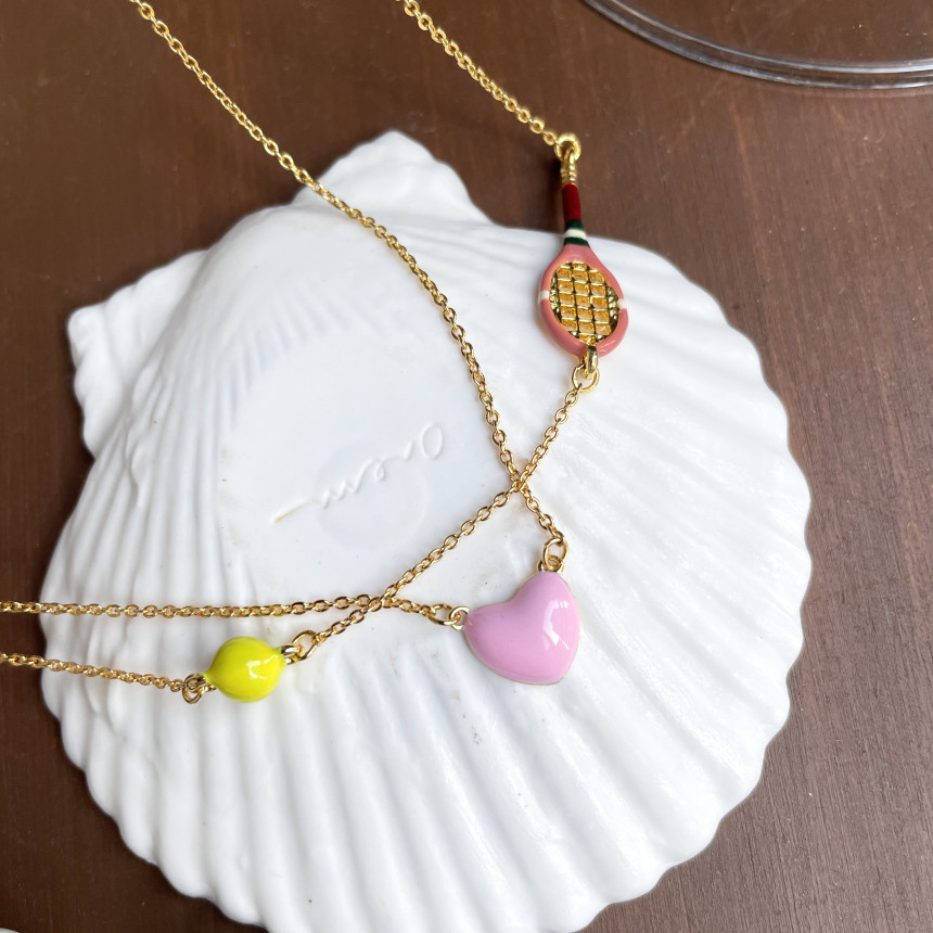 하트_네이비 +테니스라켓 목걸이_그린 목걸이와 연출