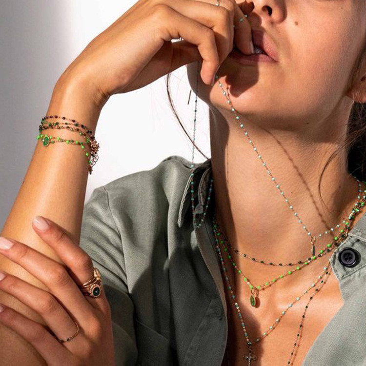 지지끌로죠 목걸이 그린/솔리드오링 베이지/ 큐빅오링 그린
