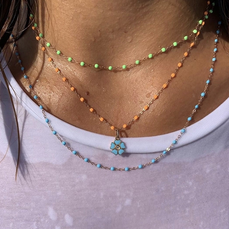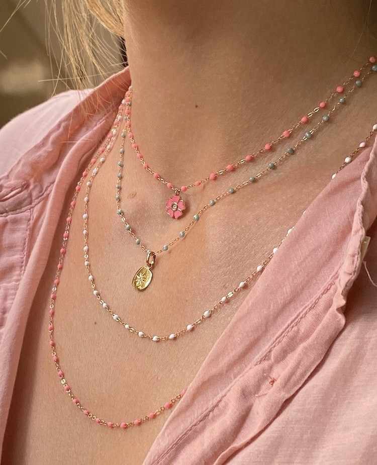 지지끌로죠 목걸이 핑크 + 지지끌로죠 목걸이 멀티 / 솔리드오링 금속하리보골드