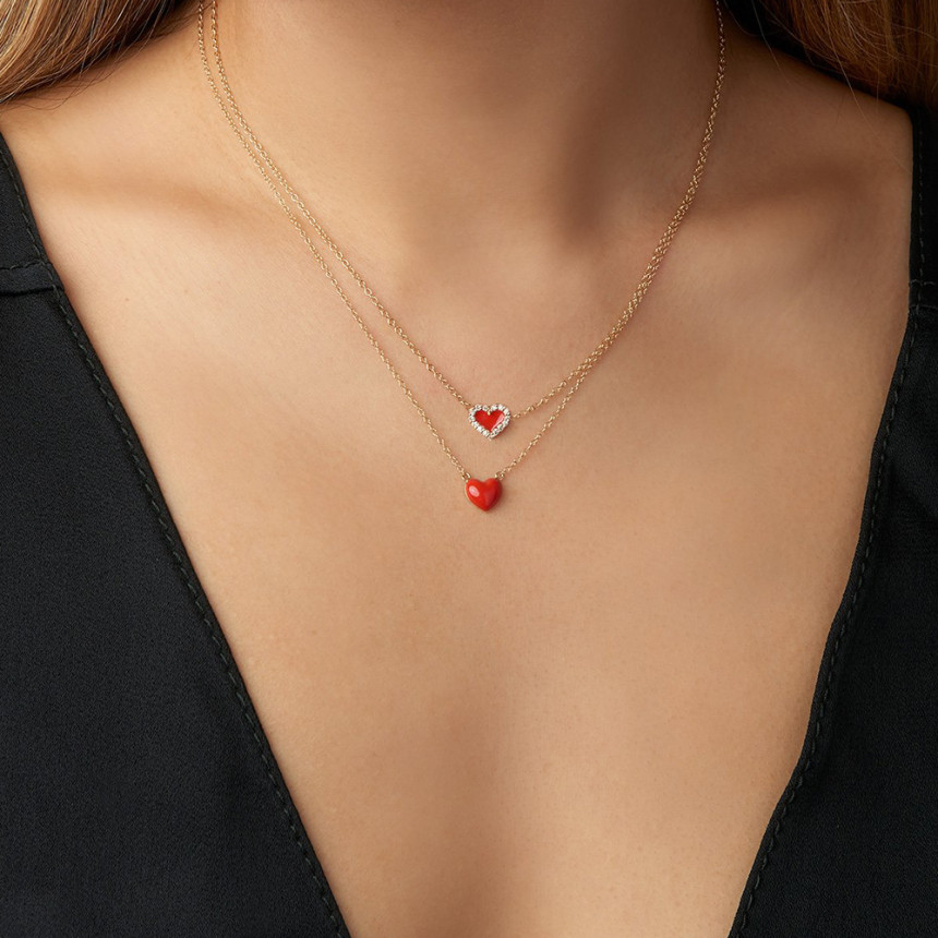하트펜던트_ 블랙 + 체인레이어드 목걸이