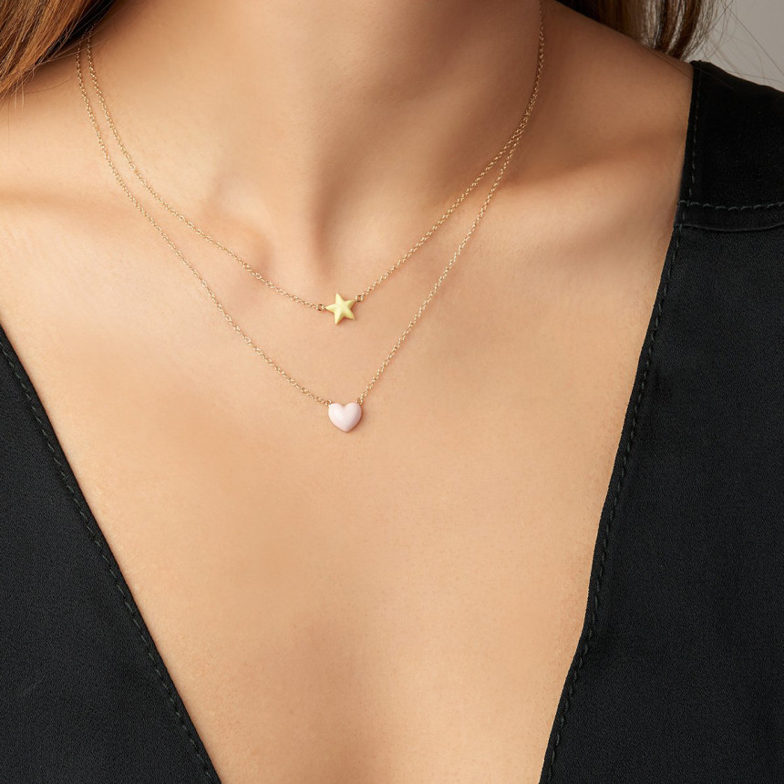 하트펜던트_ 화이트 + 체인레이어드 목걸이