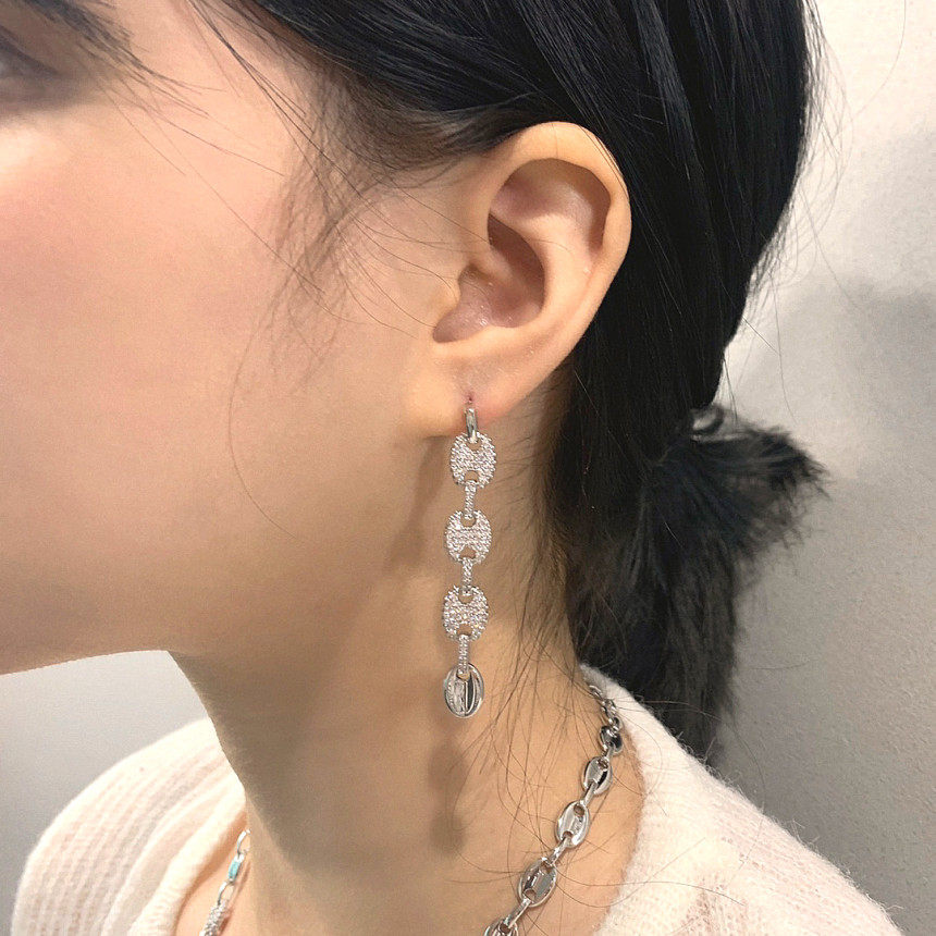 파베세팅 빈티지 링크 체인 드롭 이어링을 즐겨보세요.