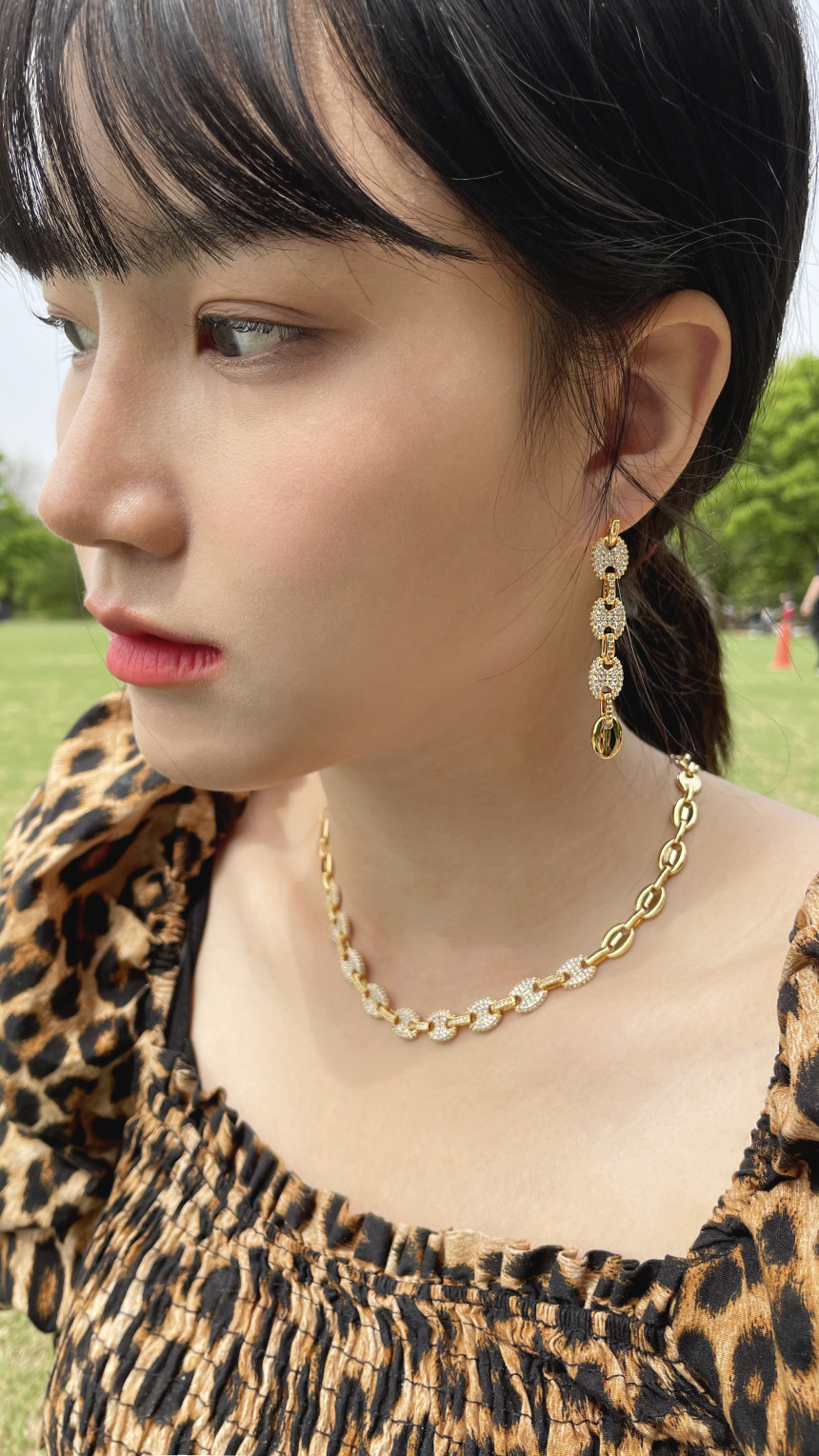 트랜디하고 화려한 디자인의 드롭귀걸이에요.