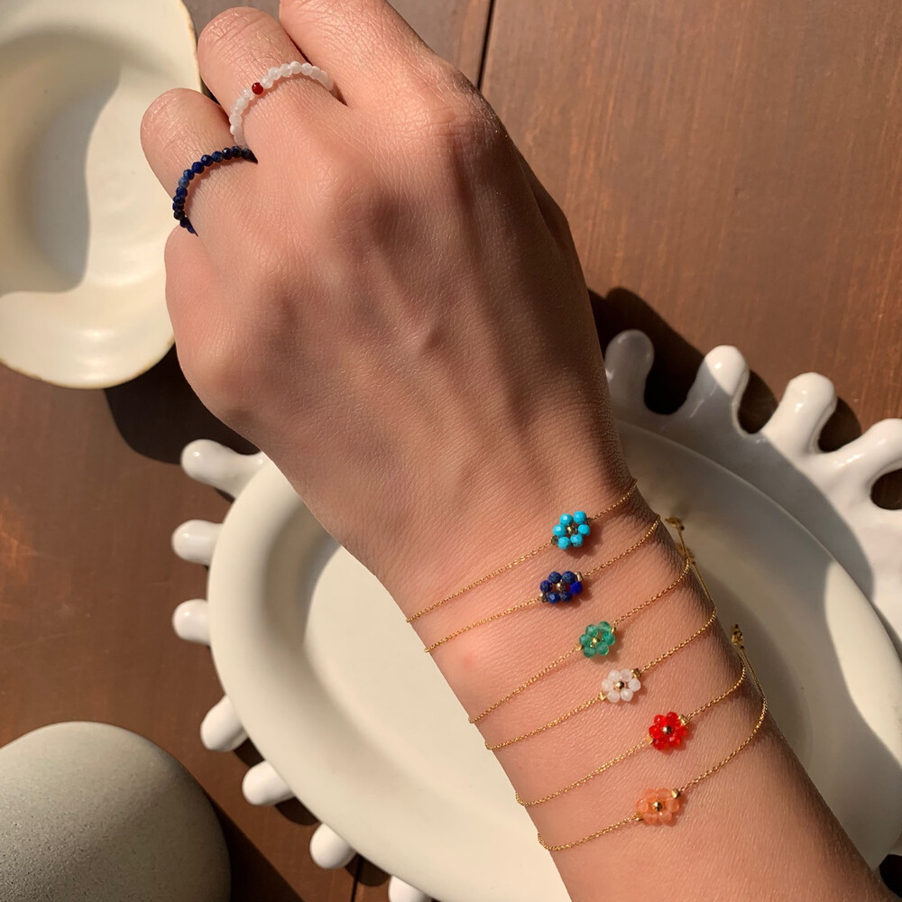4. 원석비즈 꽃펜던트 뷔팔찌