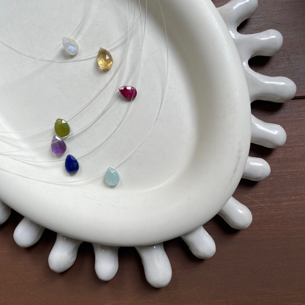 왼쪽 부터 터키석/ 피치문스톤/ 레브라도라이트/ 에메랄드 /라피스라줄리 / 카넬리언