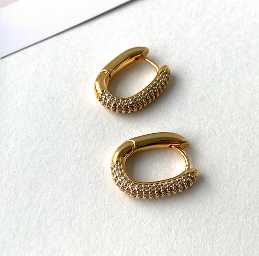 알알이 박힌 사각링 귀걸이를