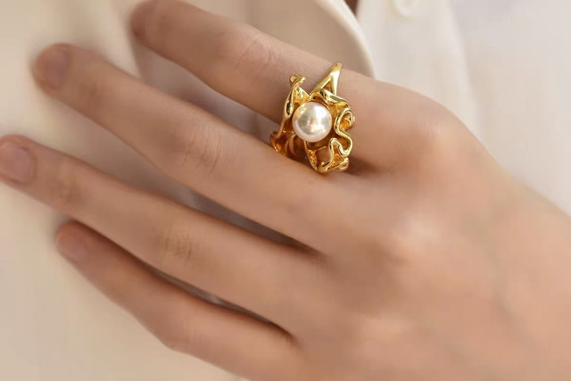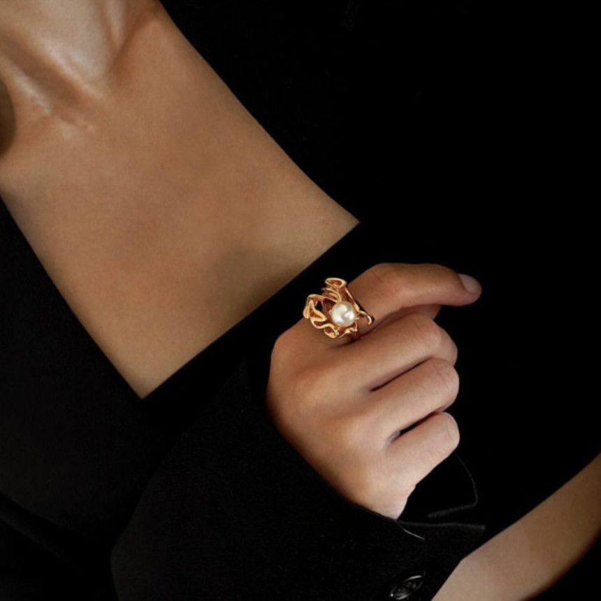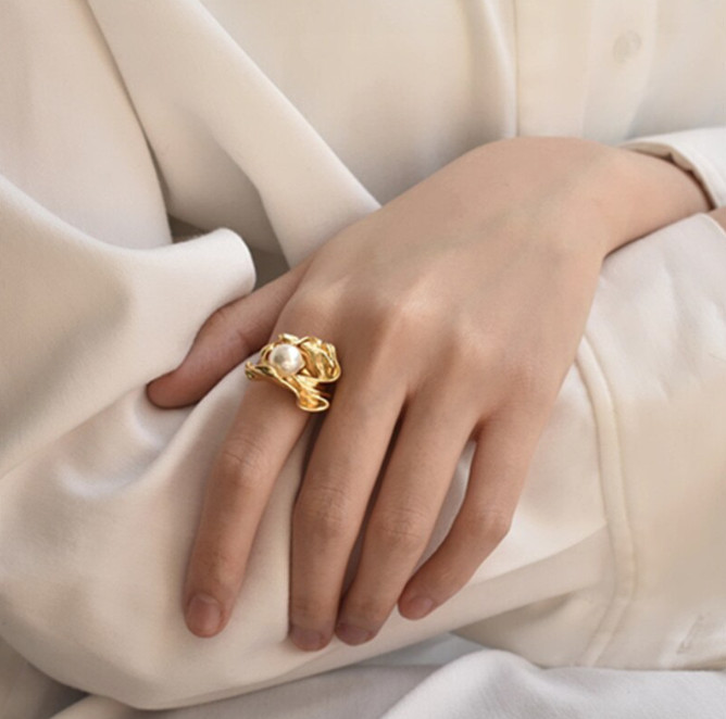 18K 골드 도금한 브론즈 소재로 파도 위처럼 넘실거리는