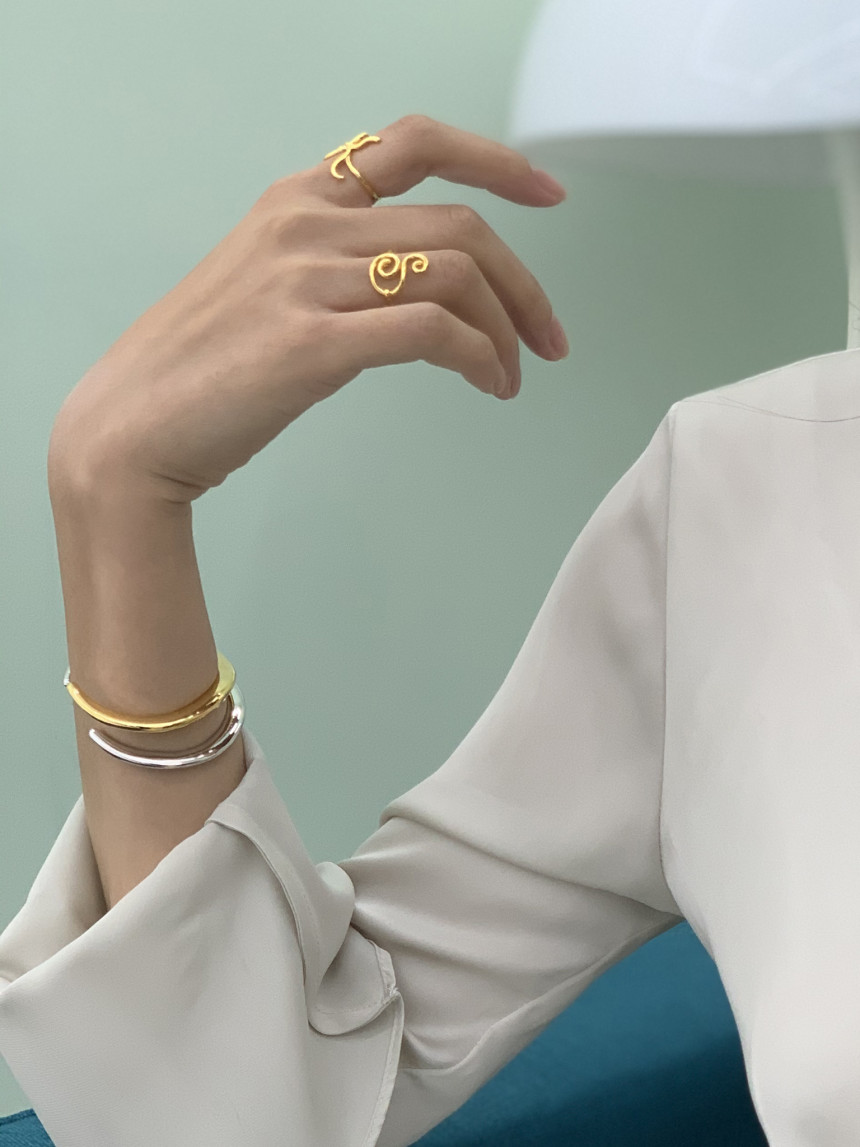 24K 골드/실버 도금한 브론즈 소재로 볼드한 유선형의 형태의 웨이브