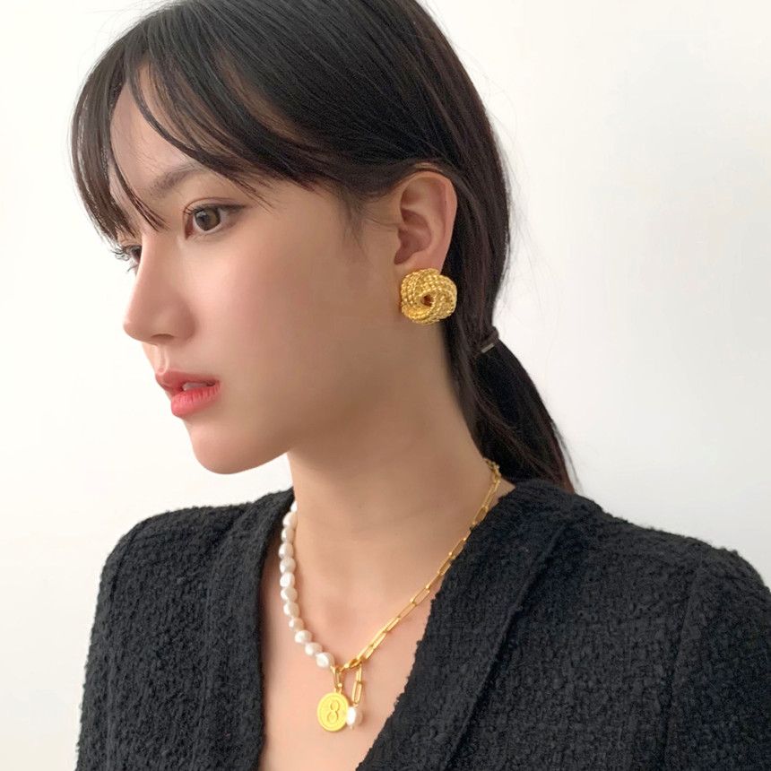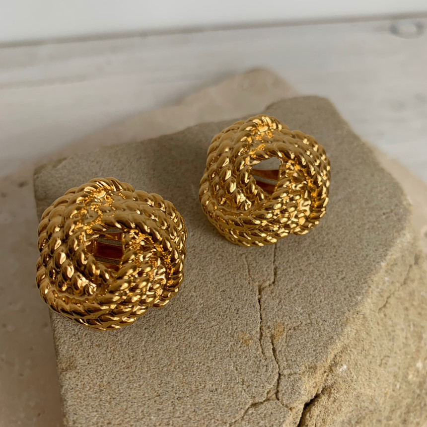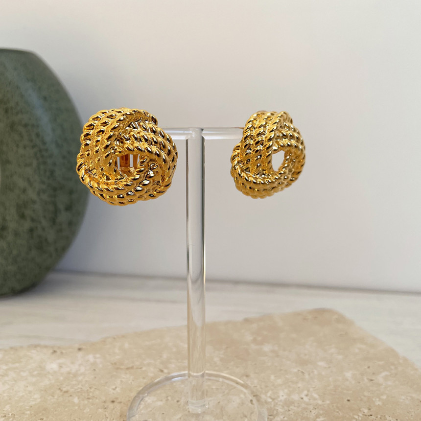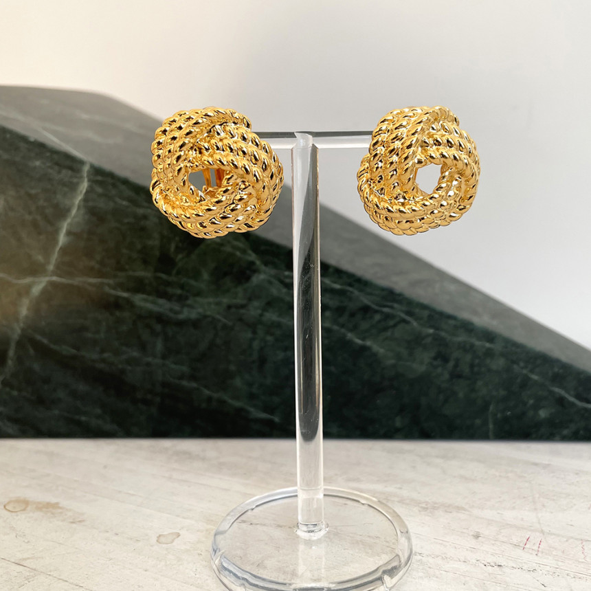 빈티지 꼬임버튼 클립형 귀걸이