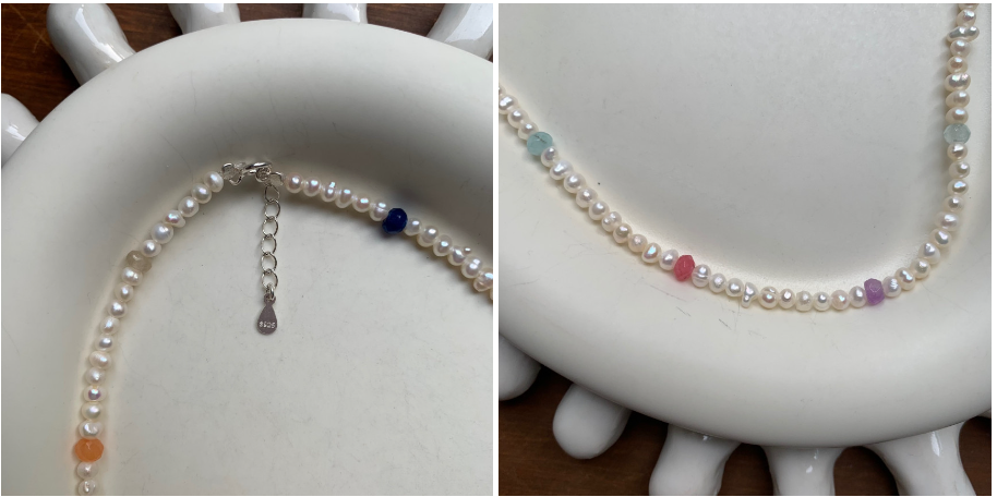 5. 멀티원석 비즈담수진주목걸이 6. 보헤미안 멀티비즈목걸이 7-1.실버925 투톤 매트 유리비즈 목걸이