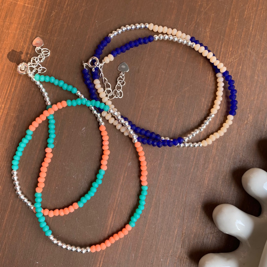 비비드한 원석비즈와 실버볼에