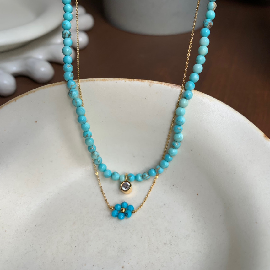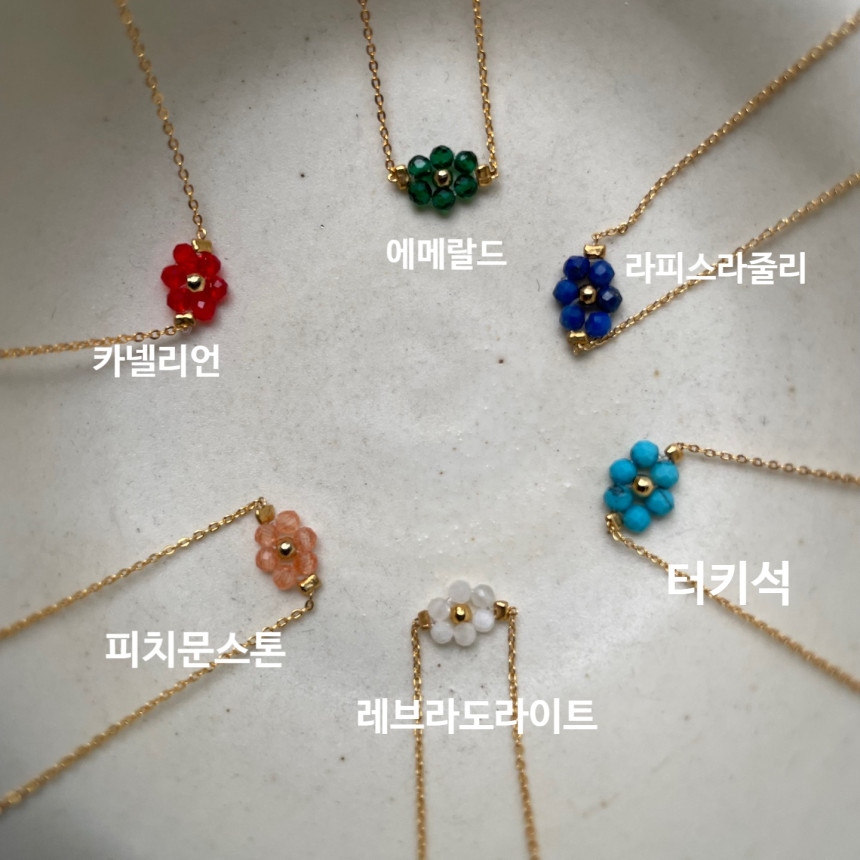 14. 원석비즈 꽃펜던트 뷔 목걸이/15.원석비즈 꽃펜던트 뷔팔찌