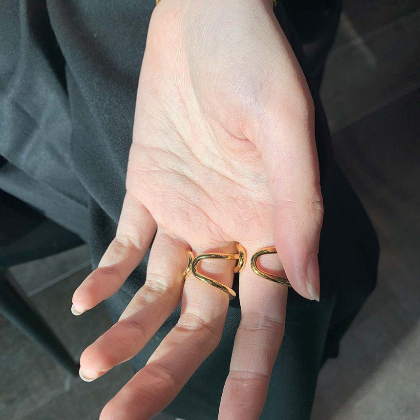 같은 디자인의 반지를 뒤집어서 두개를 착용하시면