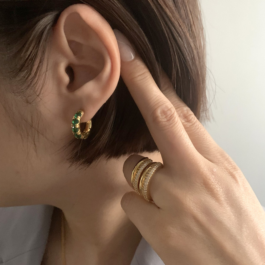 컬러 큐빅 링 김고은 귀걸이