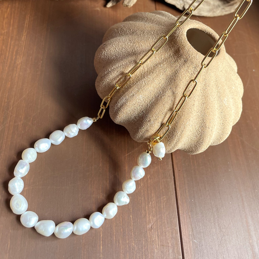 Big Pearl Clip Chain Necklace