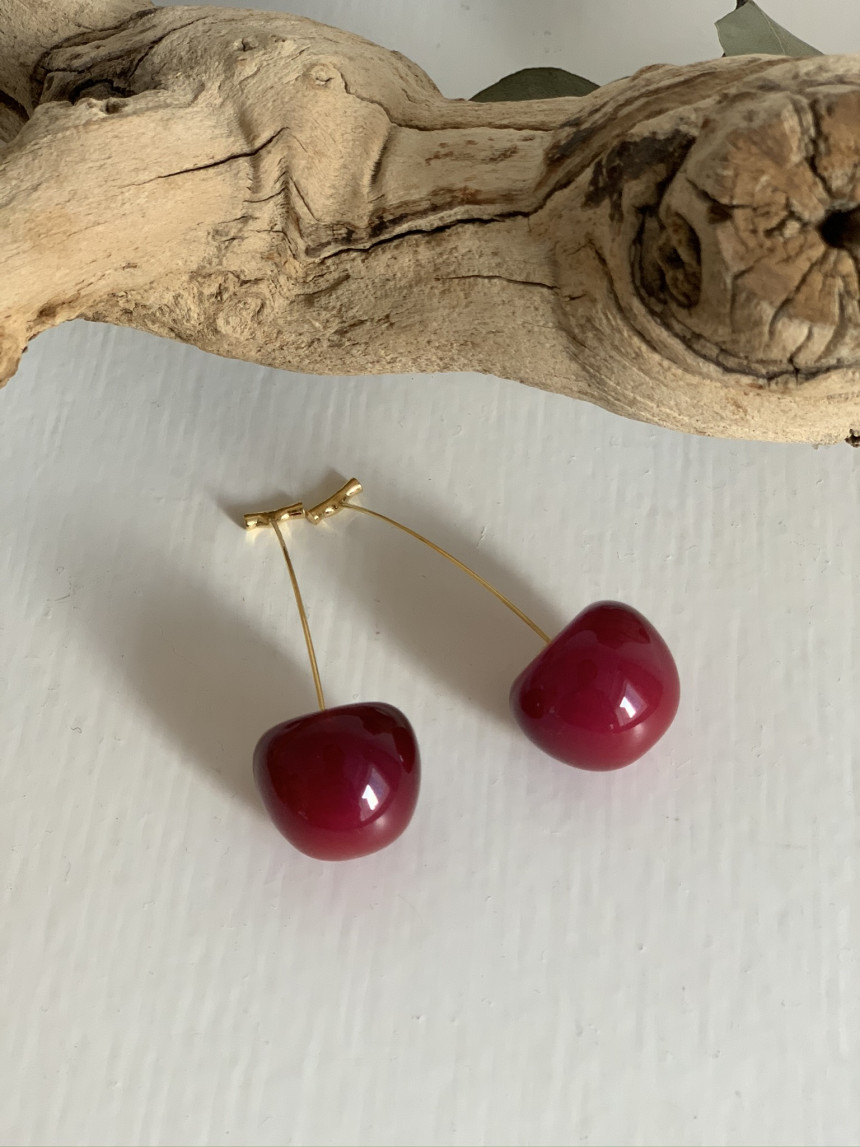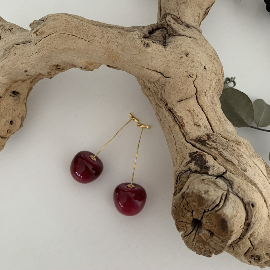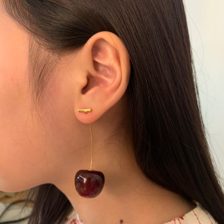 레드 체리 과일 귀걸이