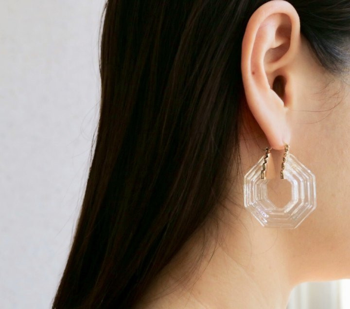 투명한 소재로 새로운 형태감의 이어링을