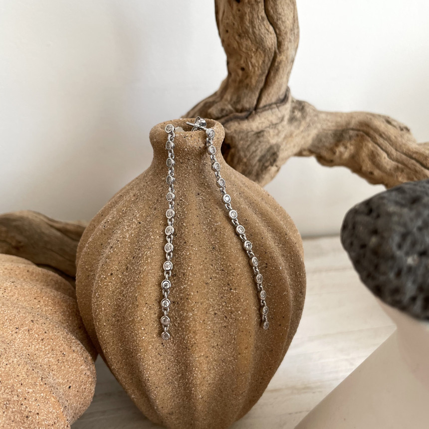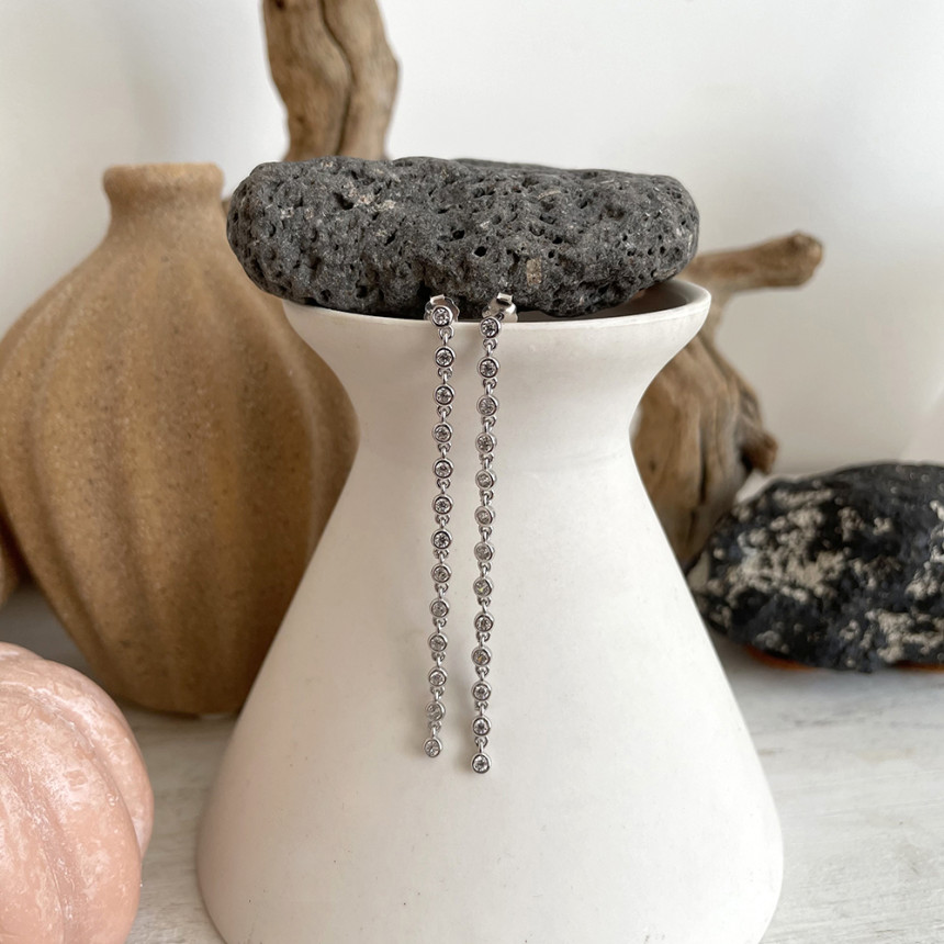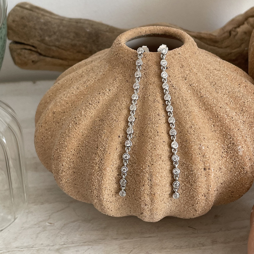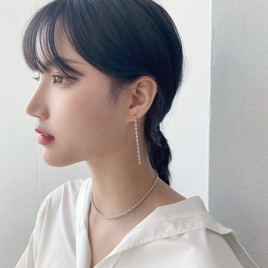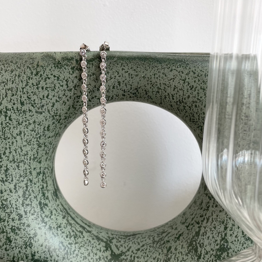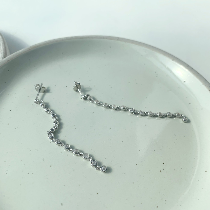 실버 925 테니스 줄 롱 이어링