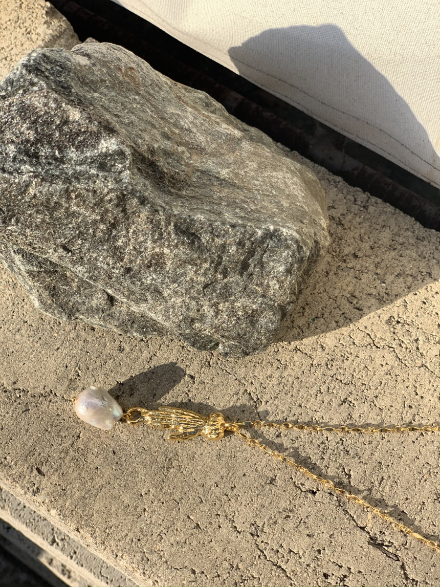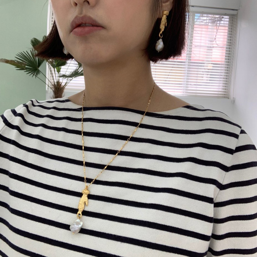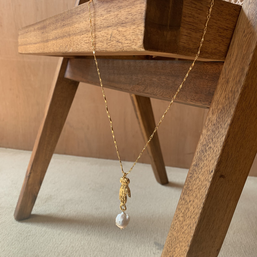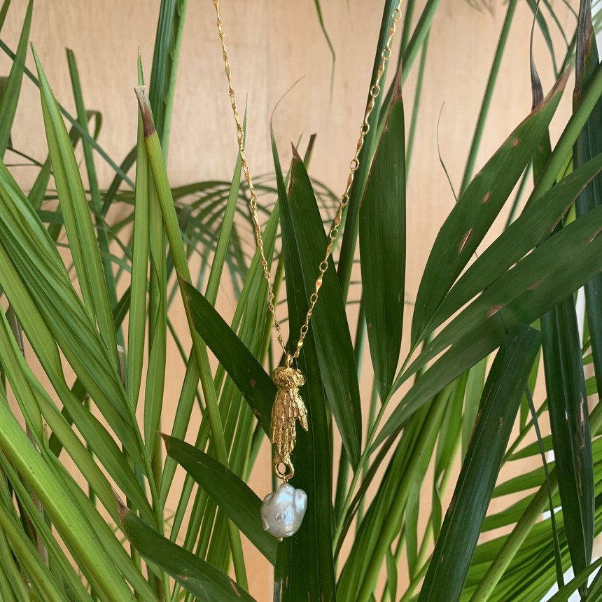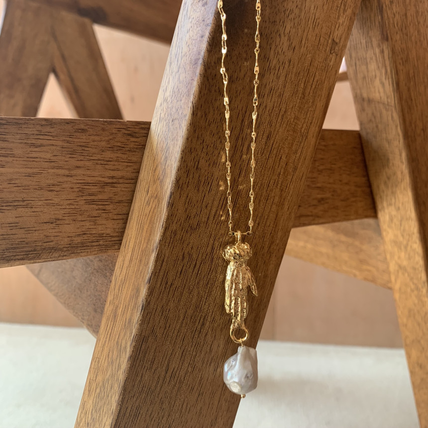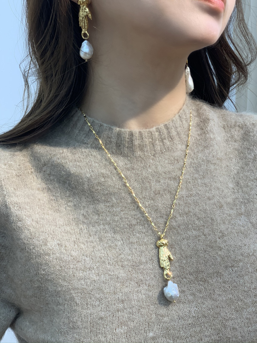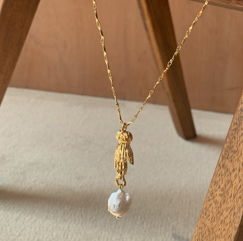 손 모양으로 조각한 참 장식 바로크 진주가 특징으로