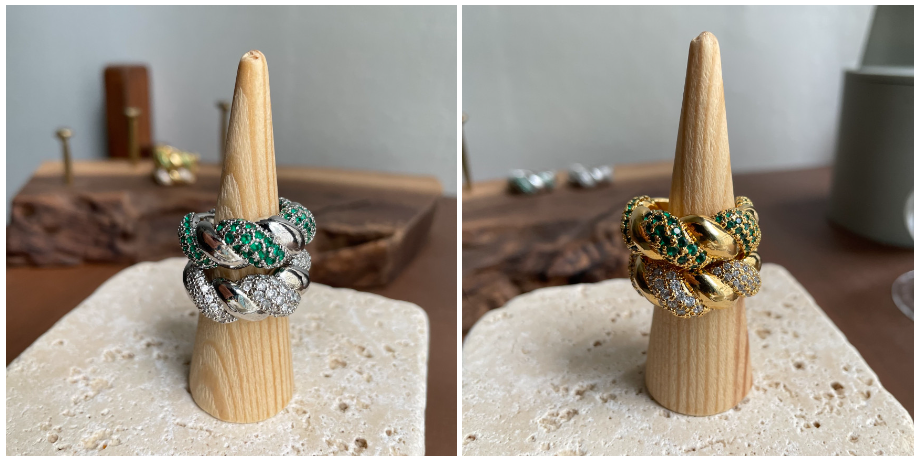 실버와 골드컬러 링의 바디전체에