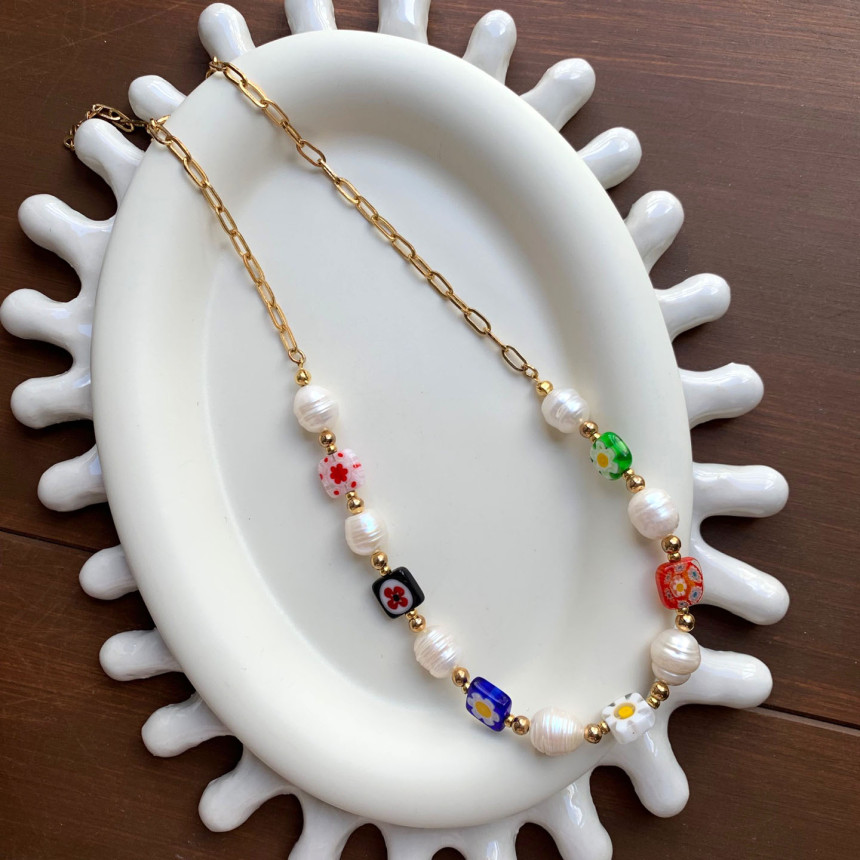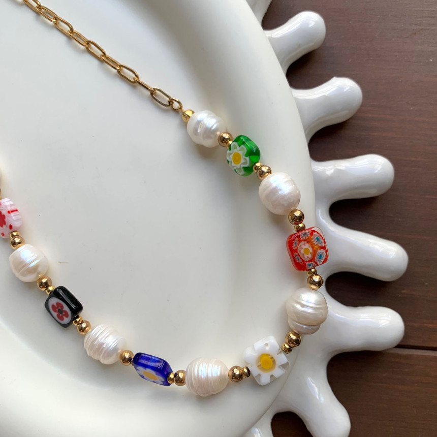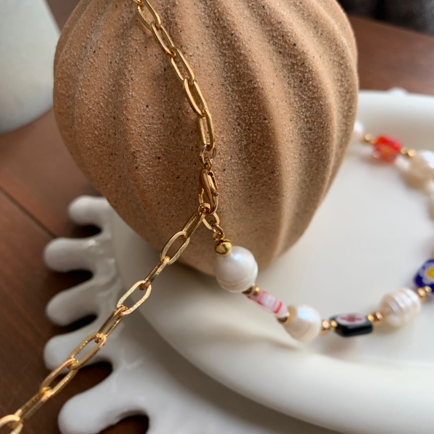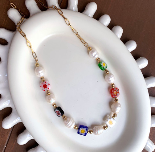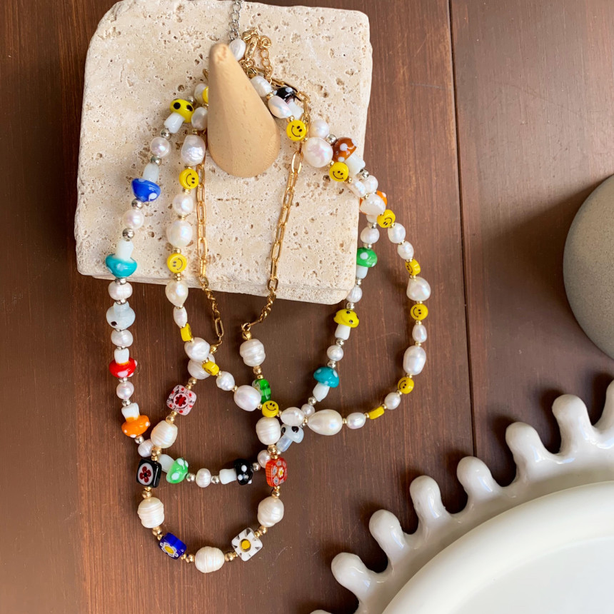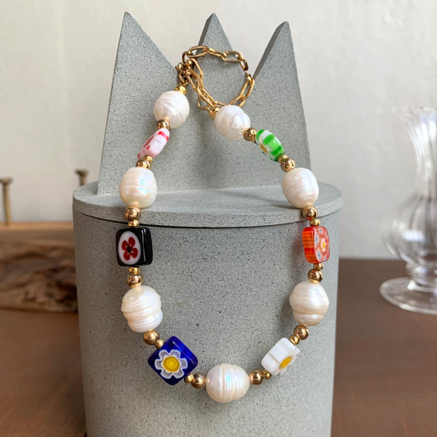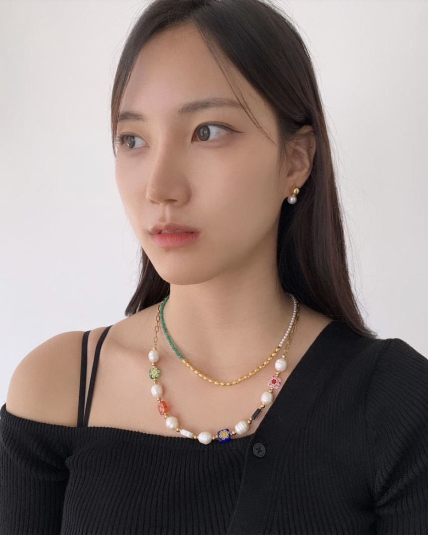 담수 진주 + 글라스비즈 + BRASS 18K골드도금