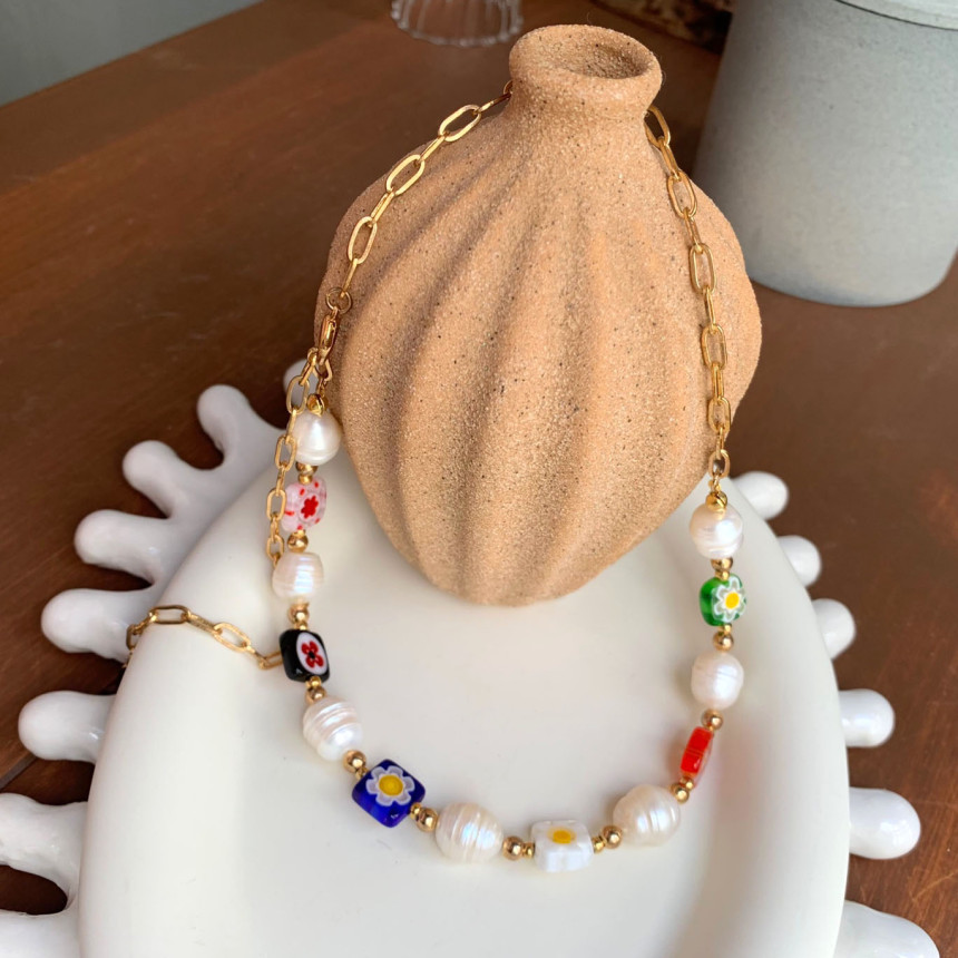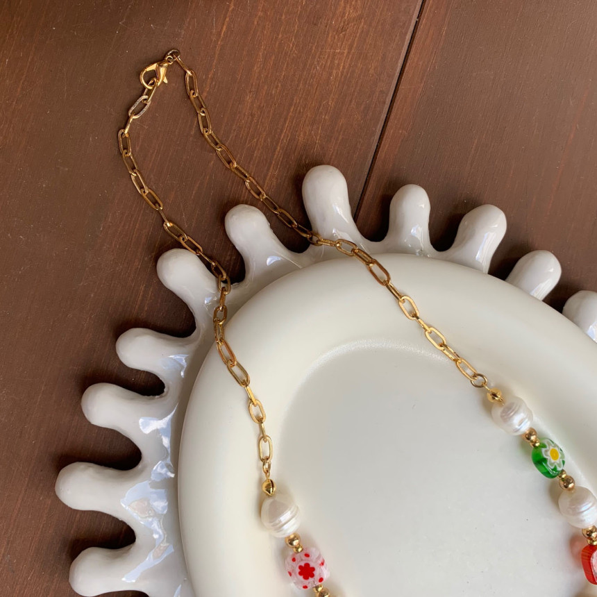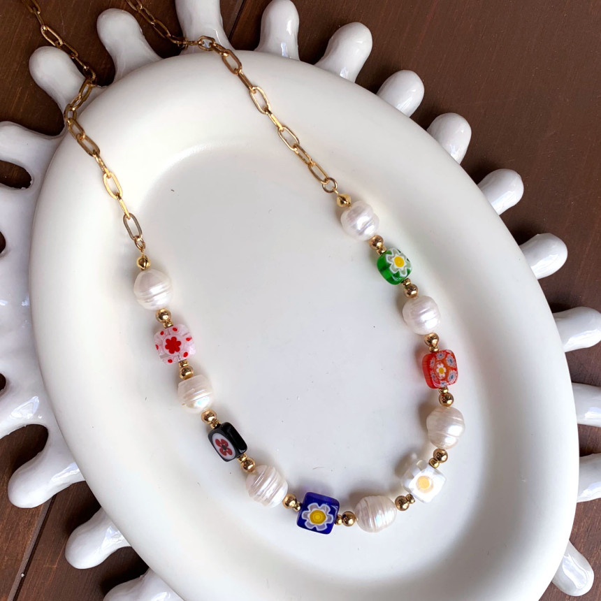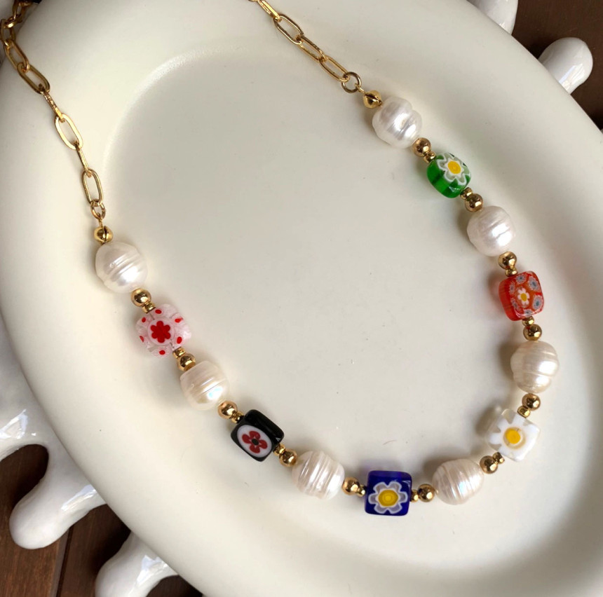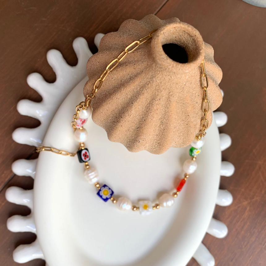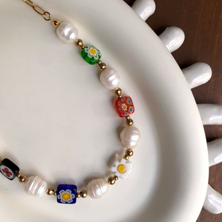 담수 진주 + 글라스비즈 + BRASS 18K골드도금