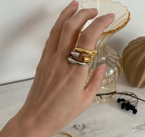 어떤 디자인의 반지와도 레이어드 하기도 좋아요.