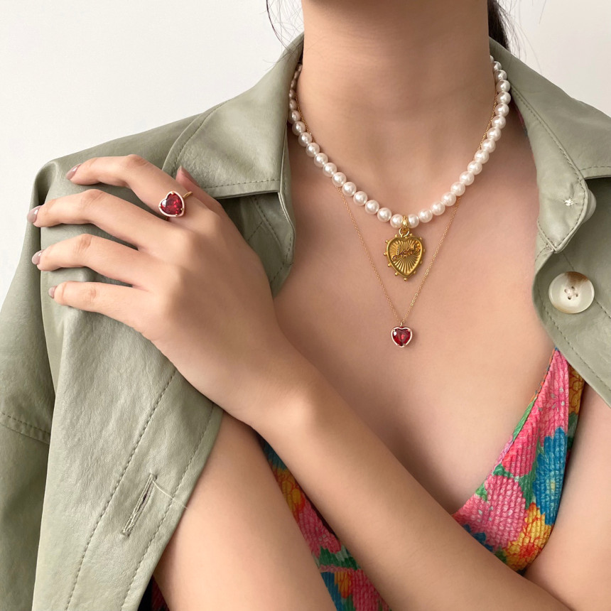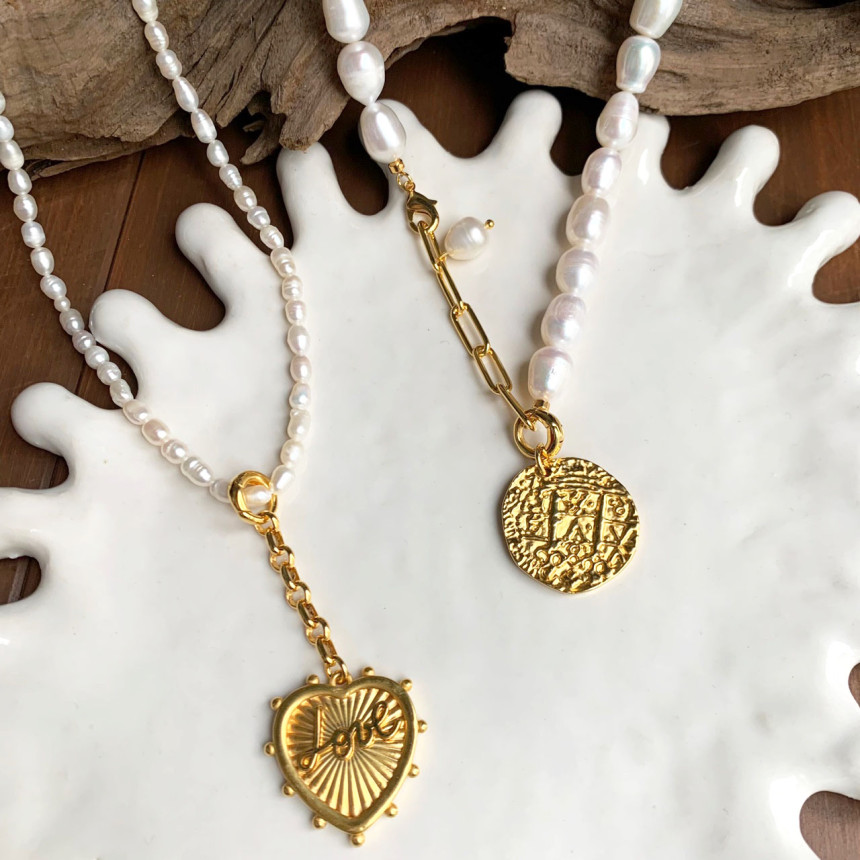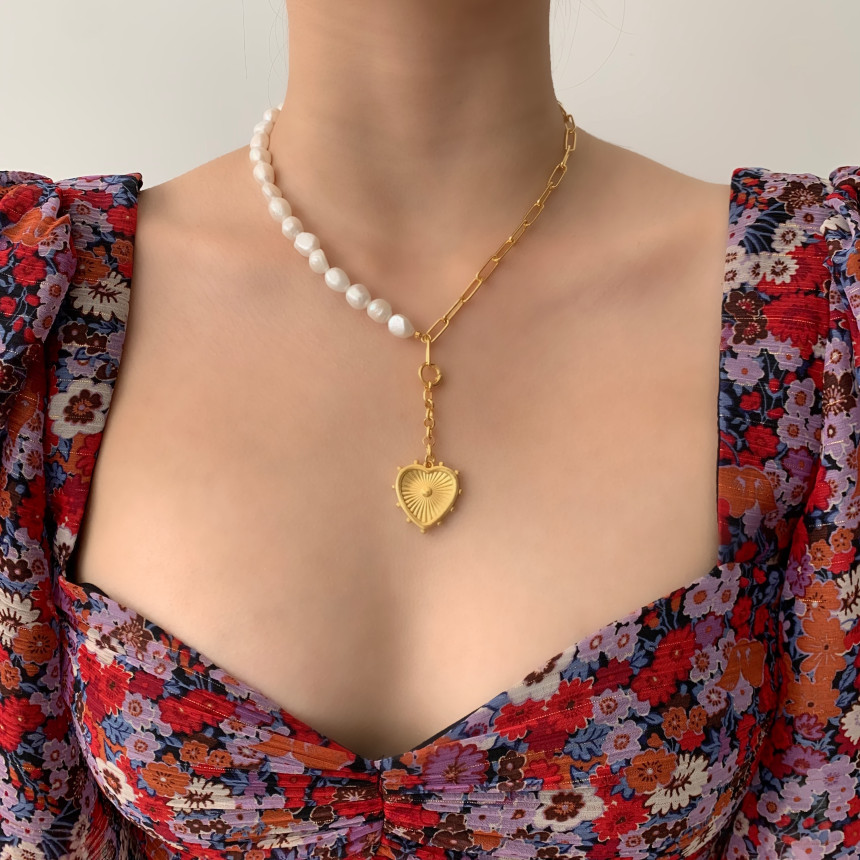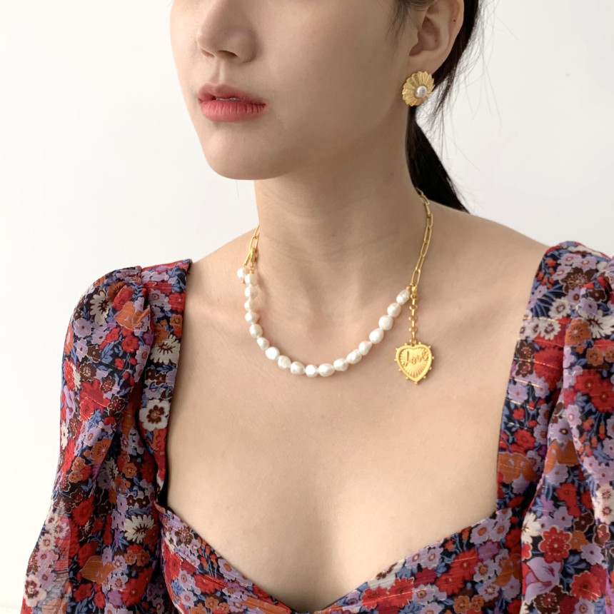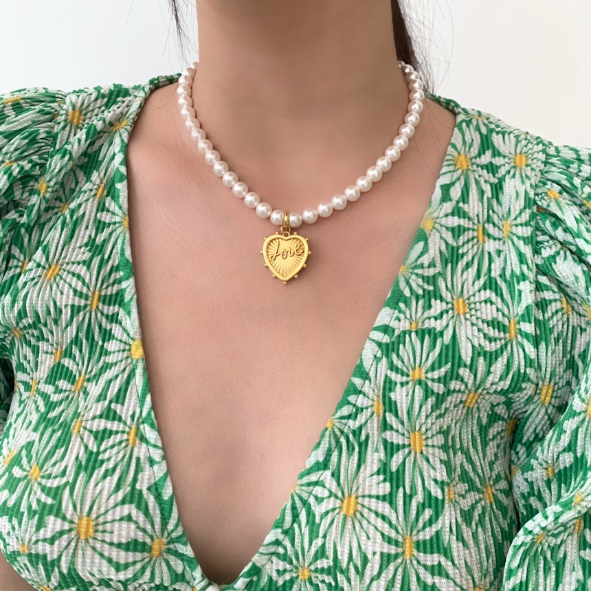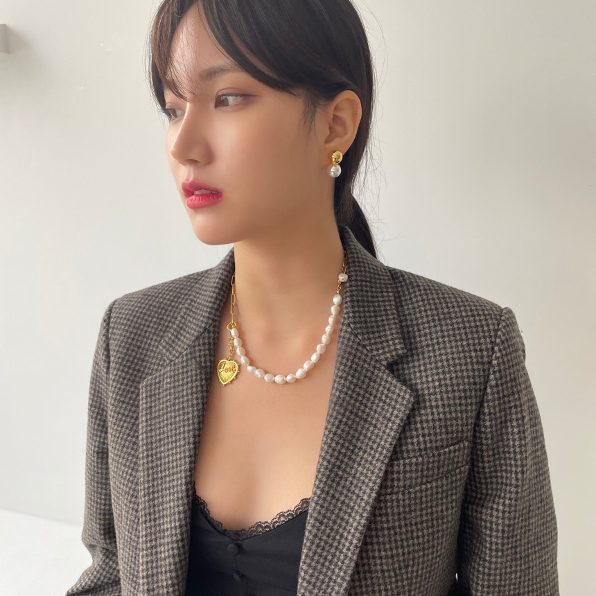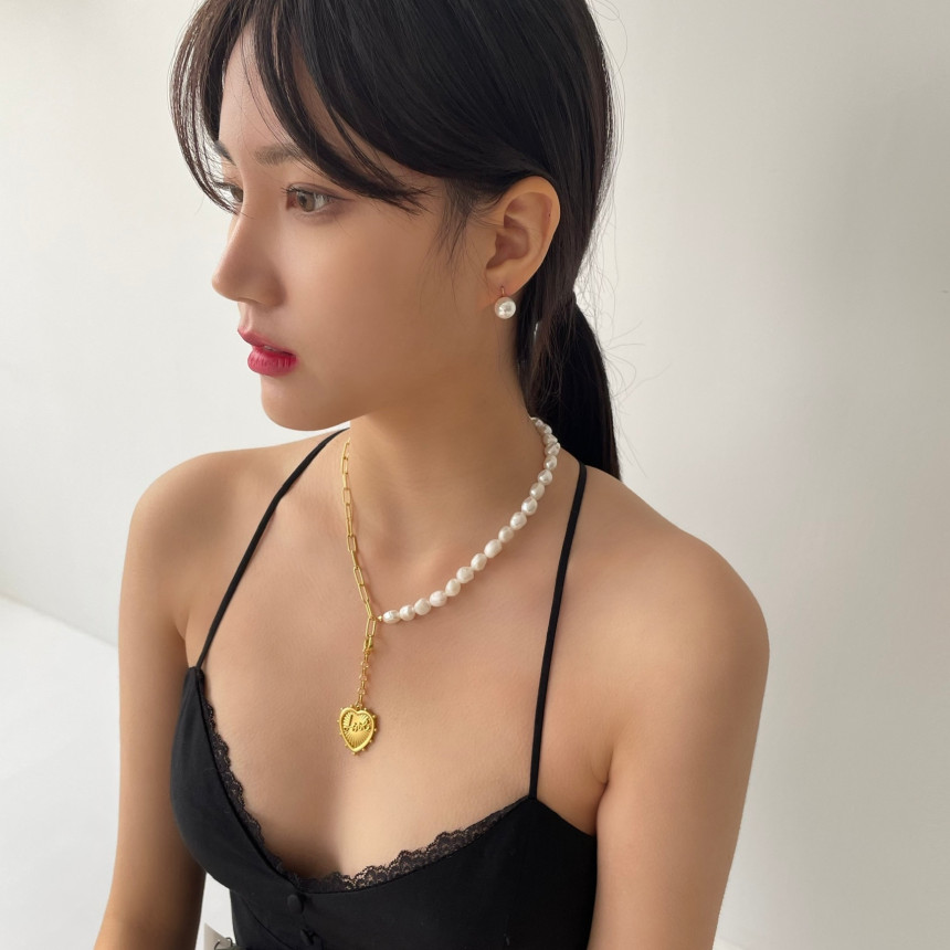 반반체인진주 목걸이 + LOVE 하트 펜던트