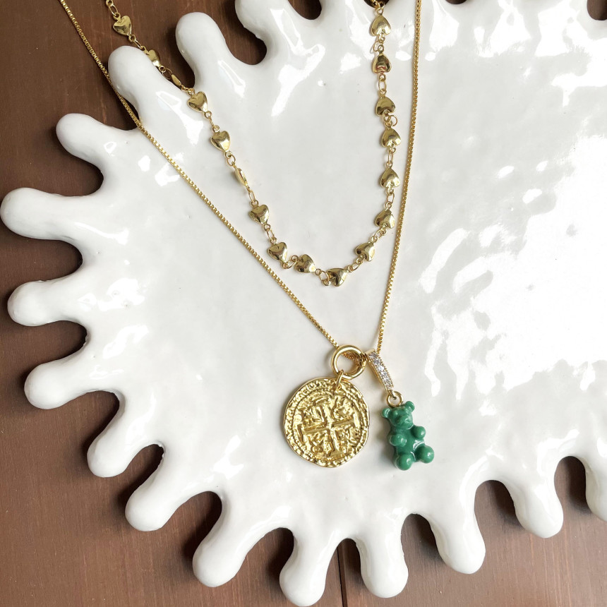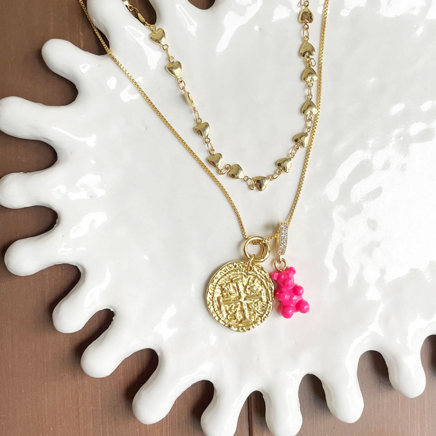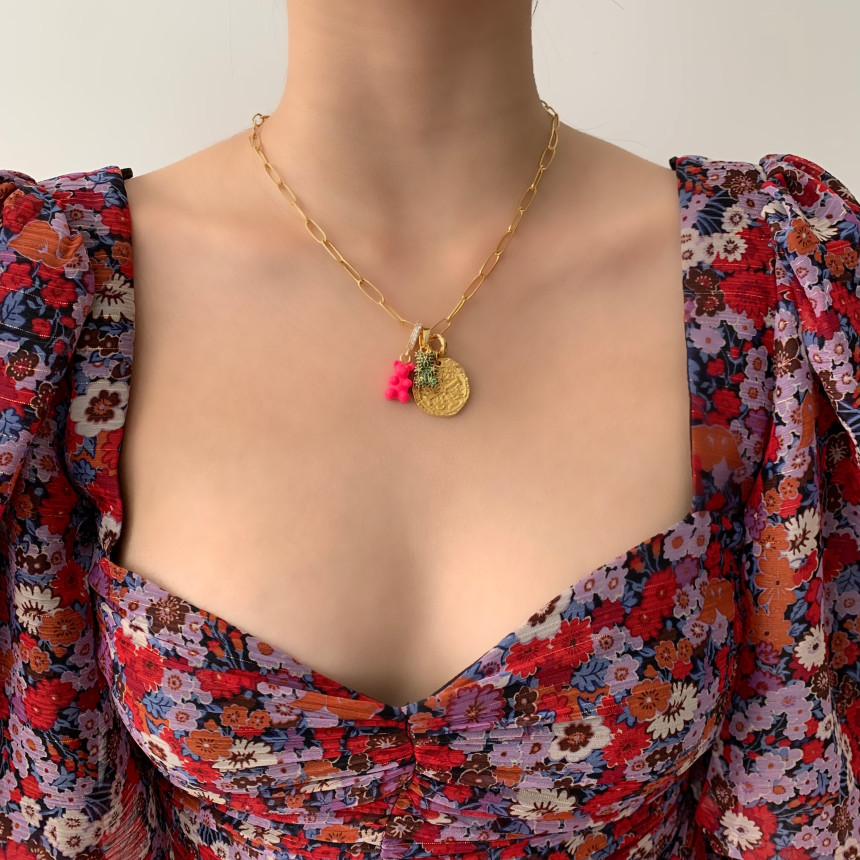 2인 단추 목걸이 샤목걸이