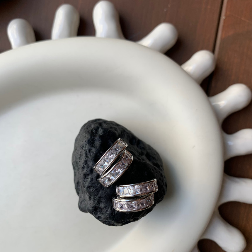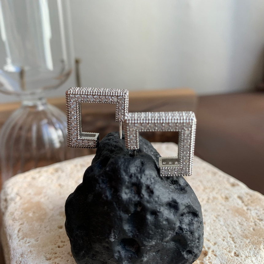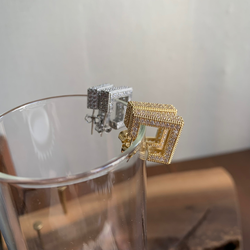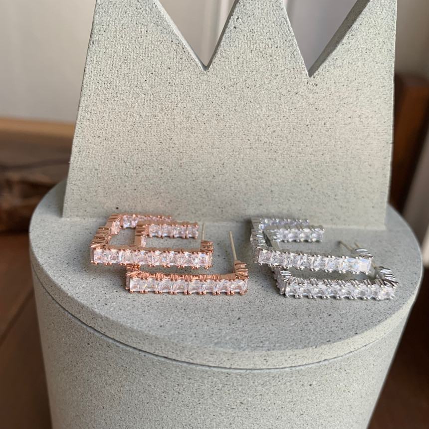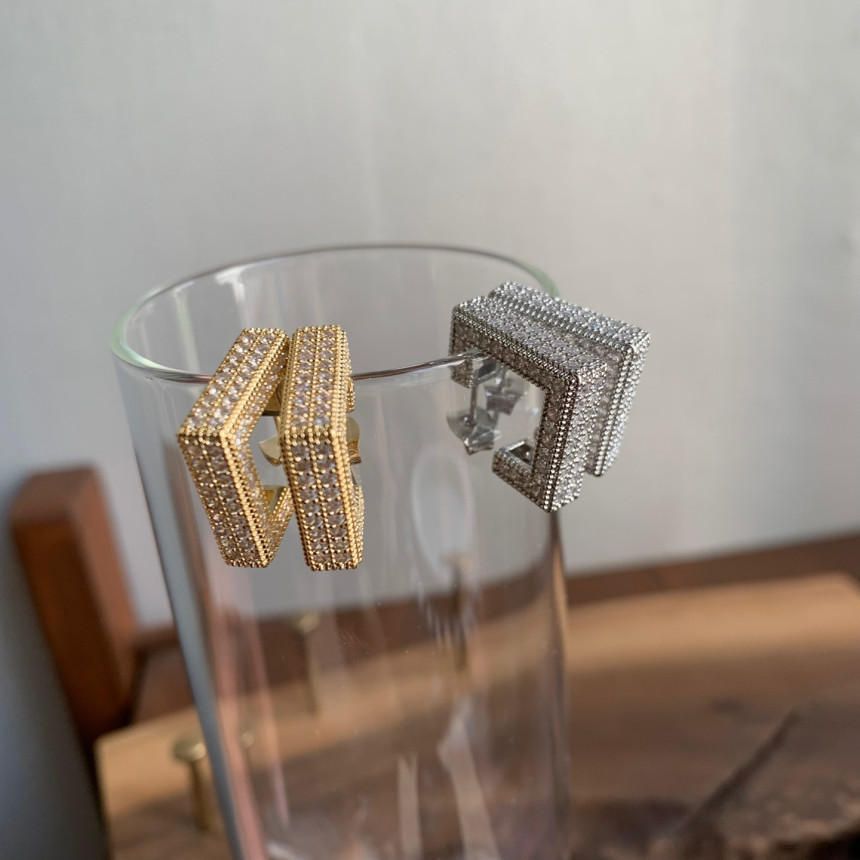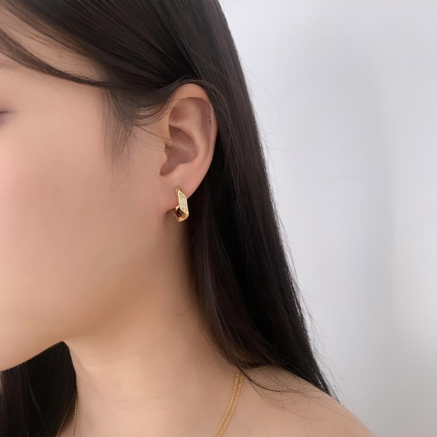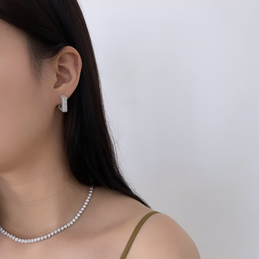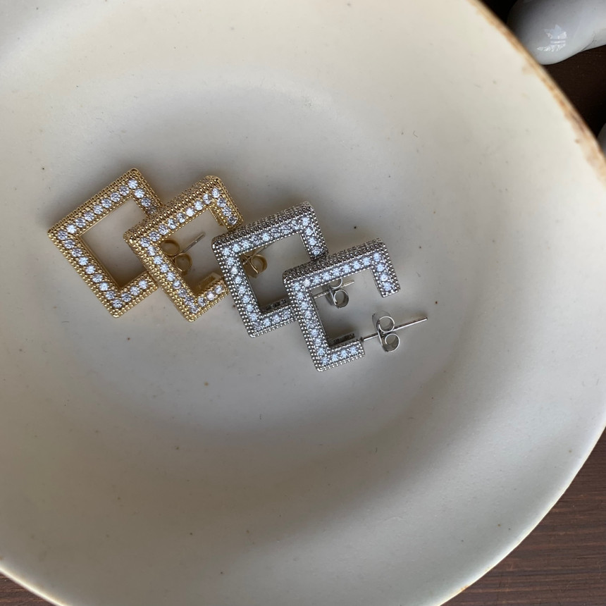 파베세팅큐빅사각링 귀걸이