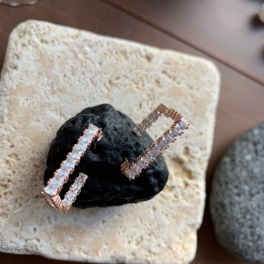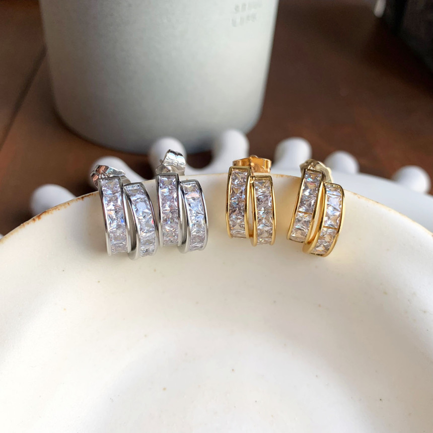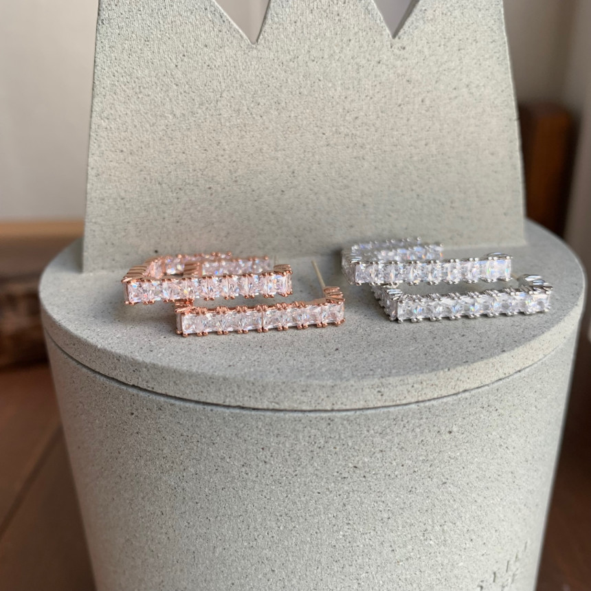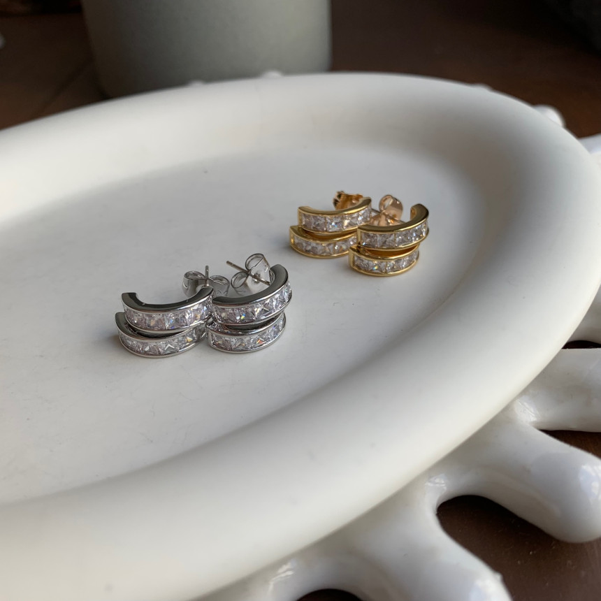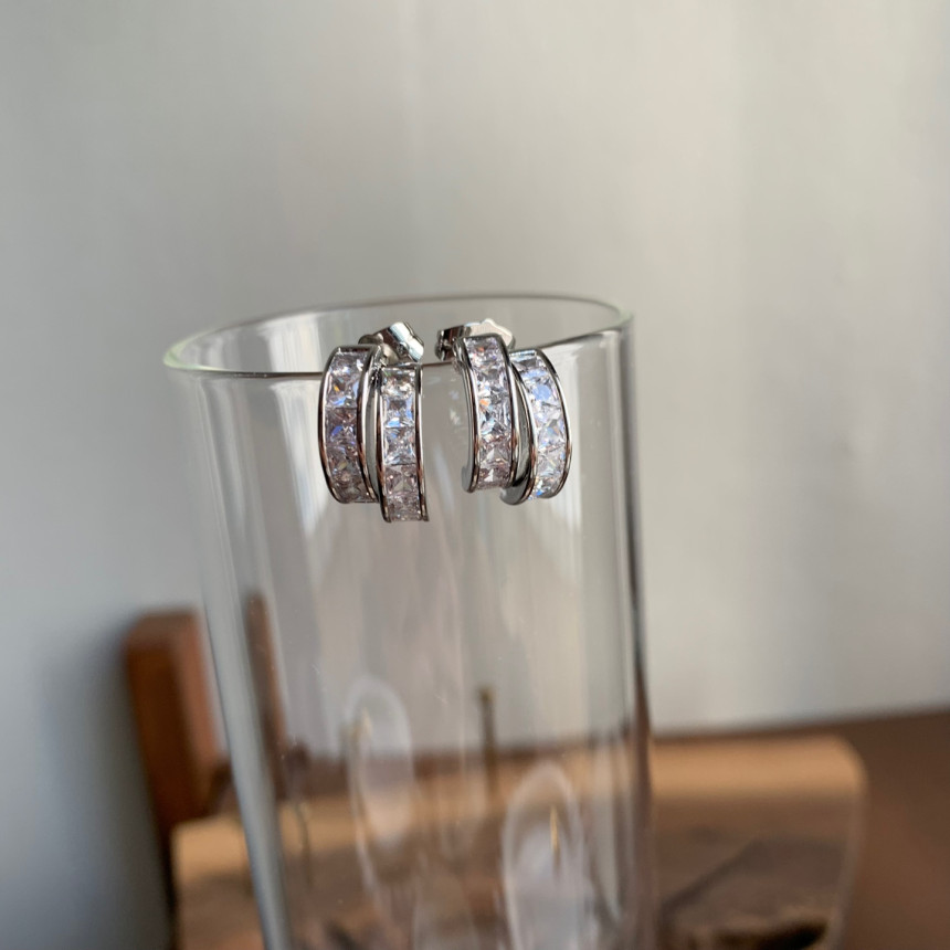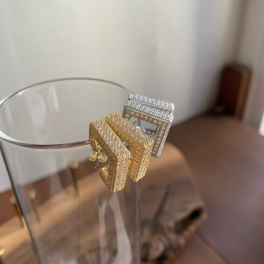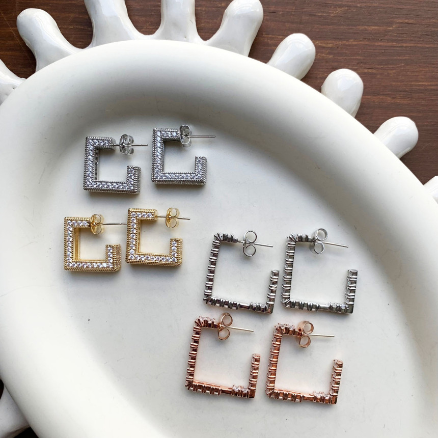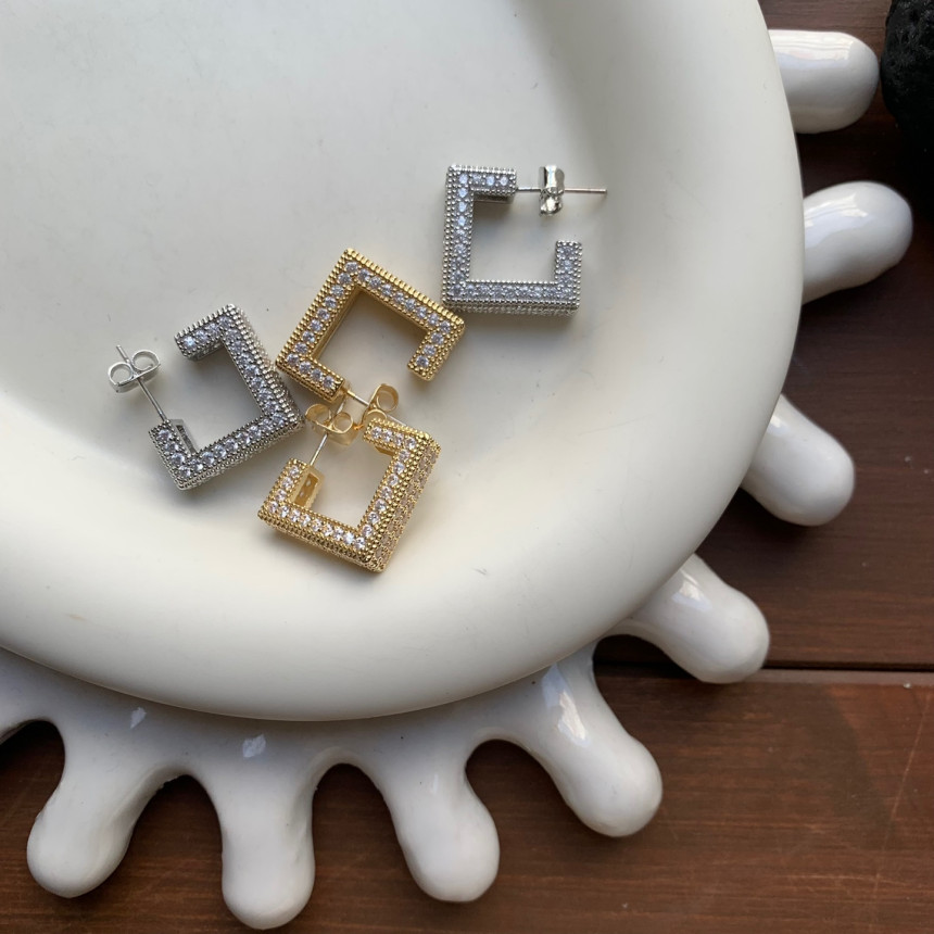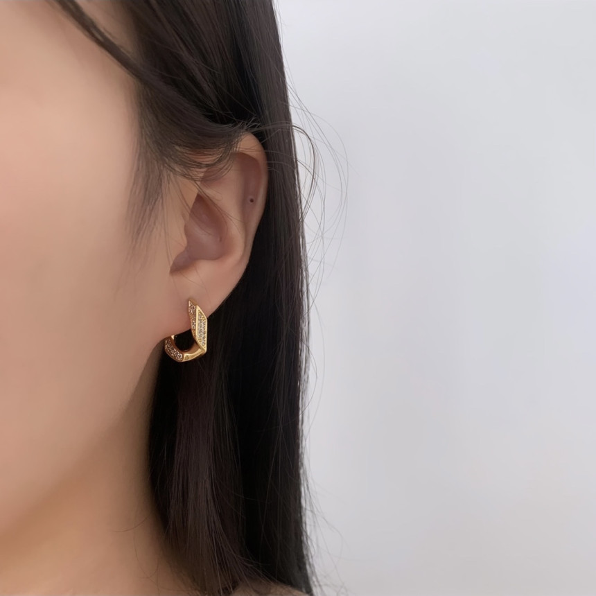 파베세팅큐빅사각링 귀걸이
