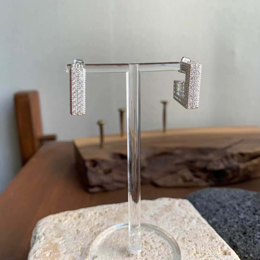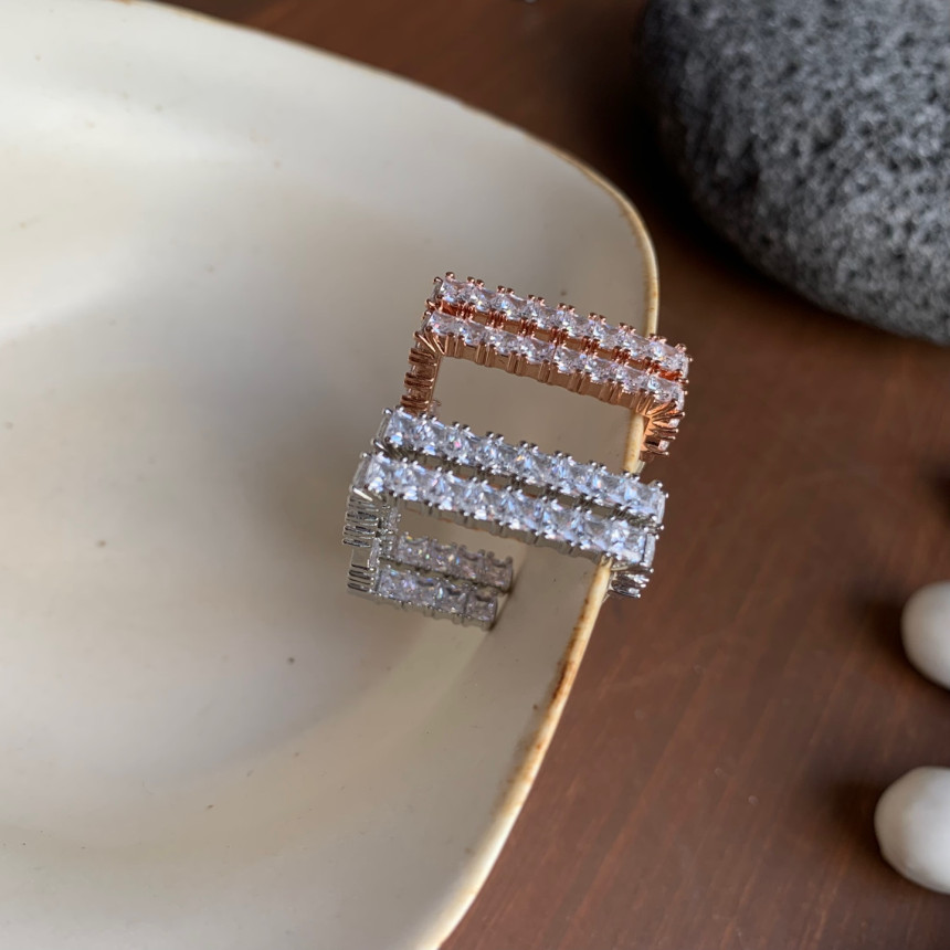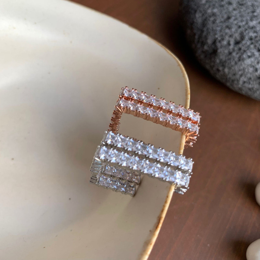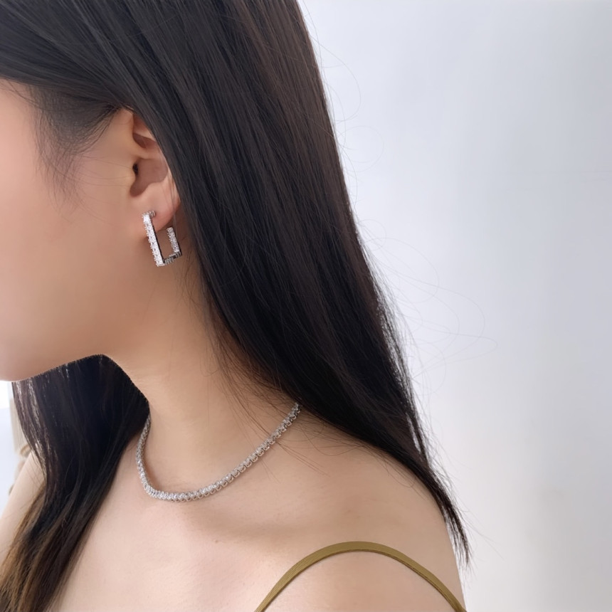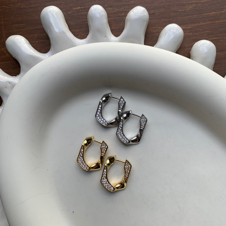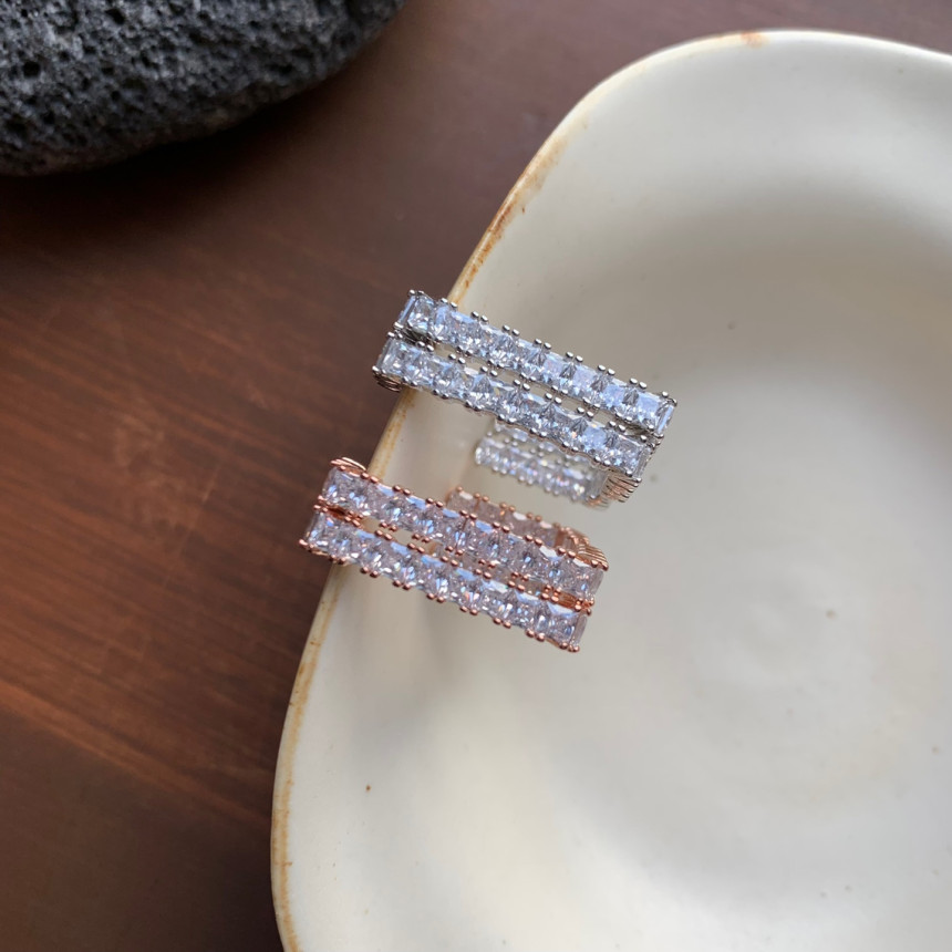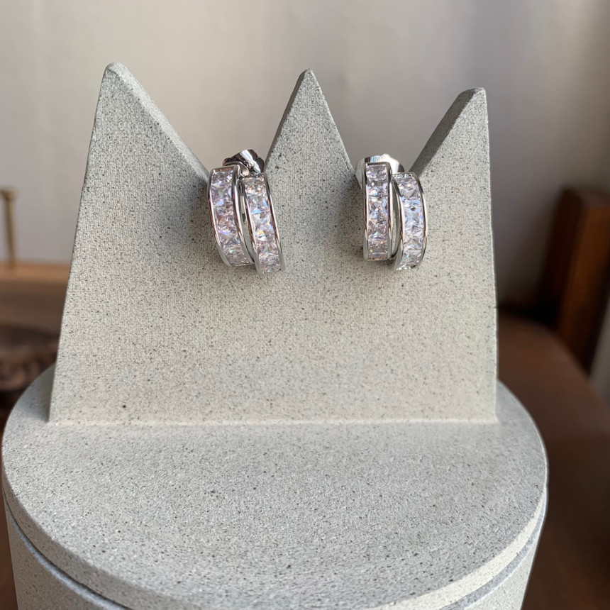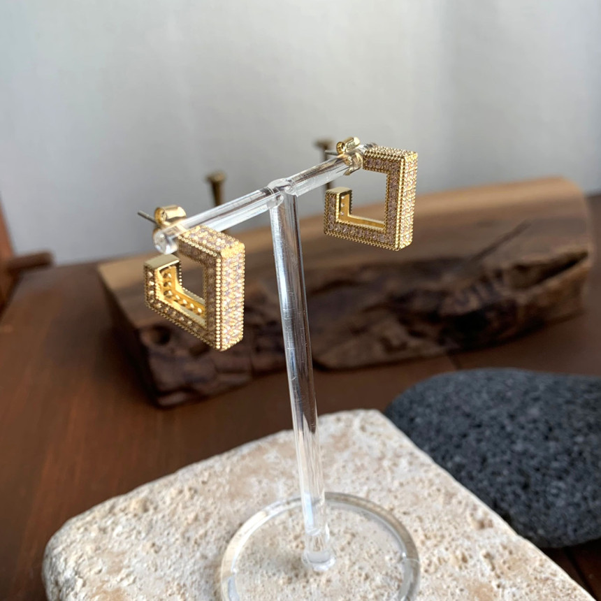 파베세팅큐빅사각링 귀걸이
