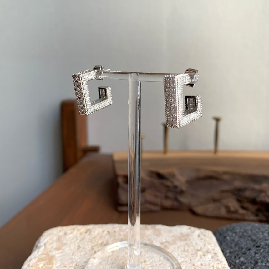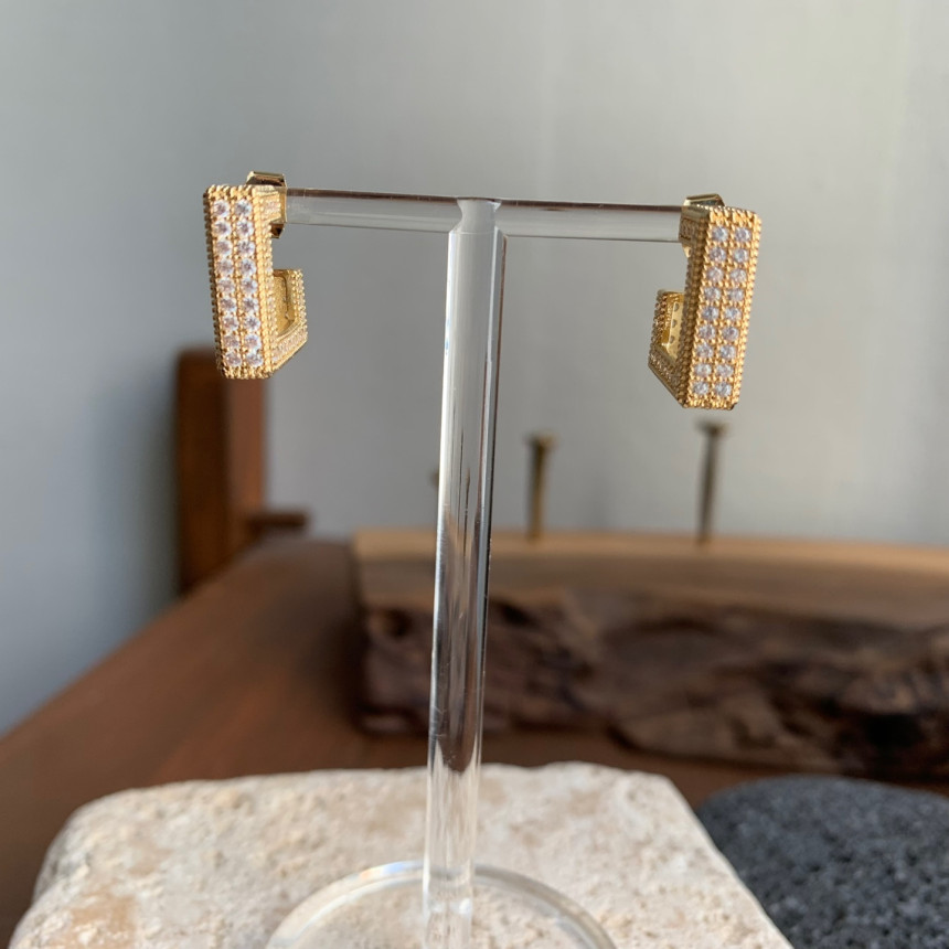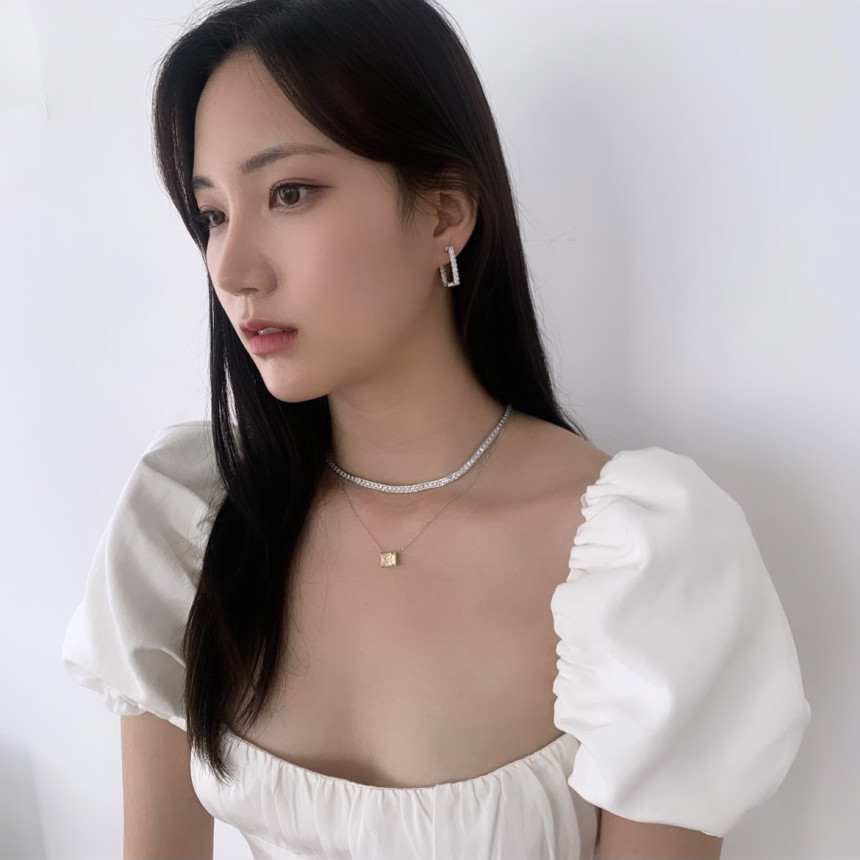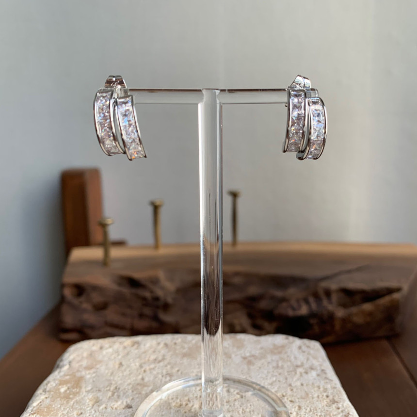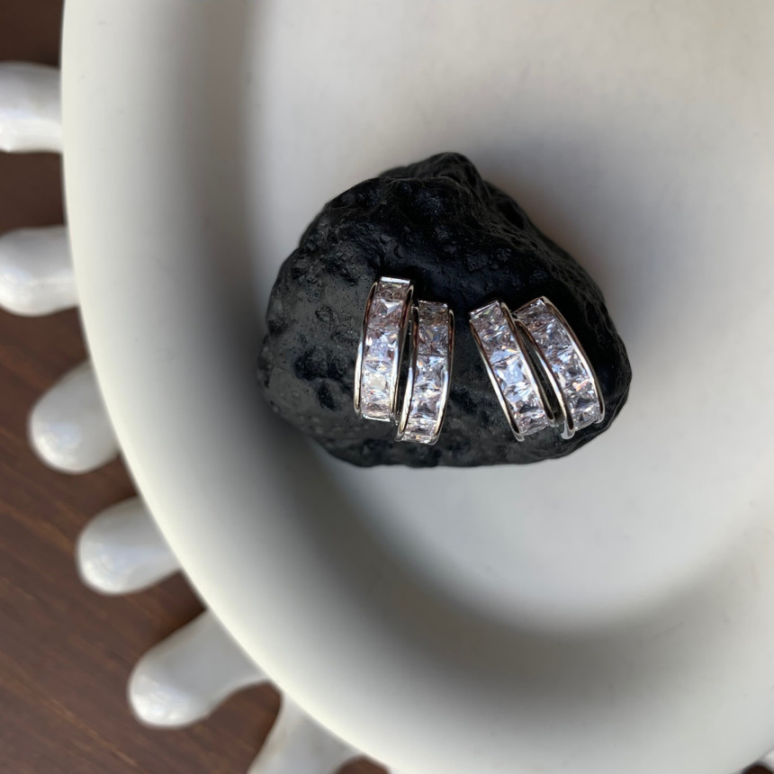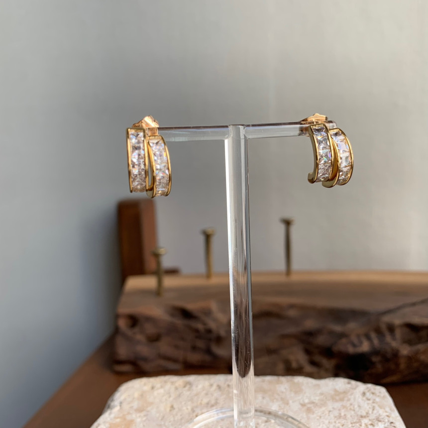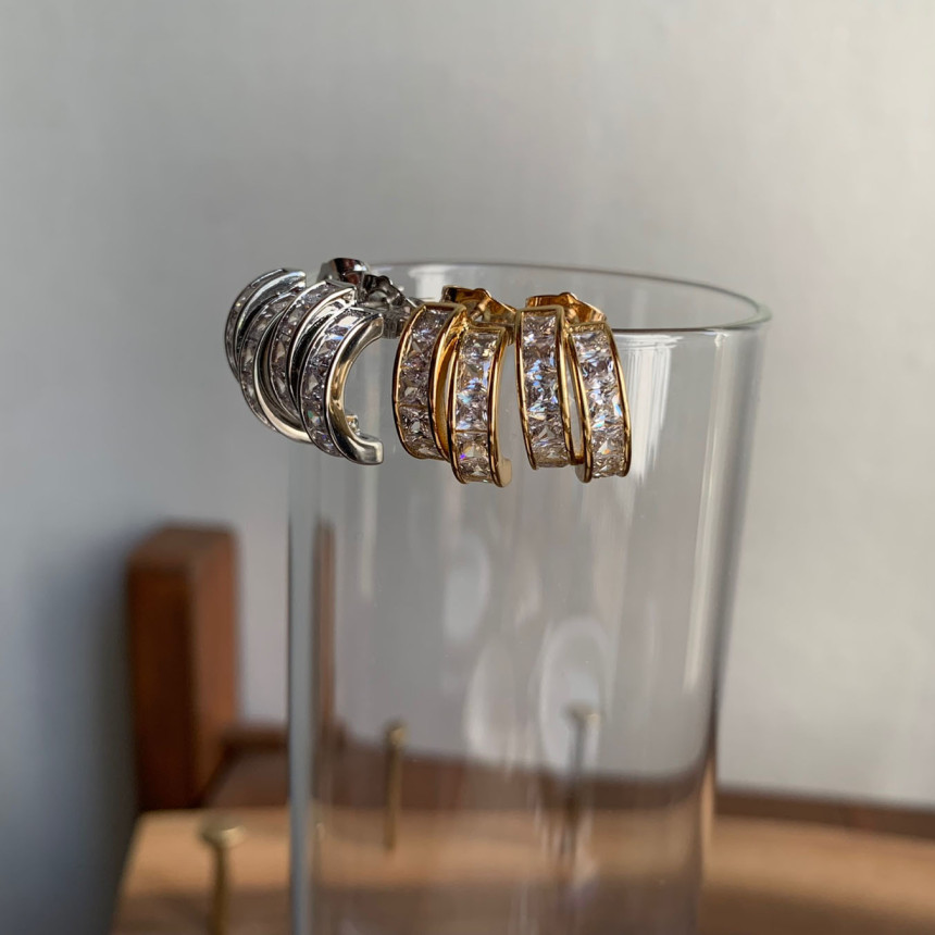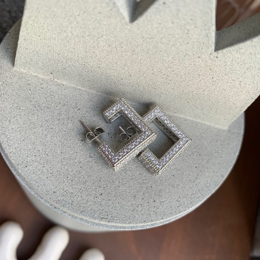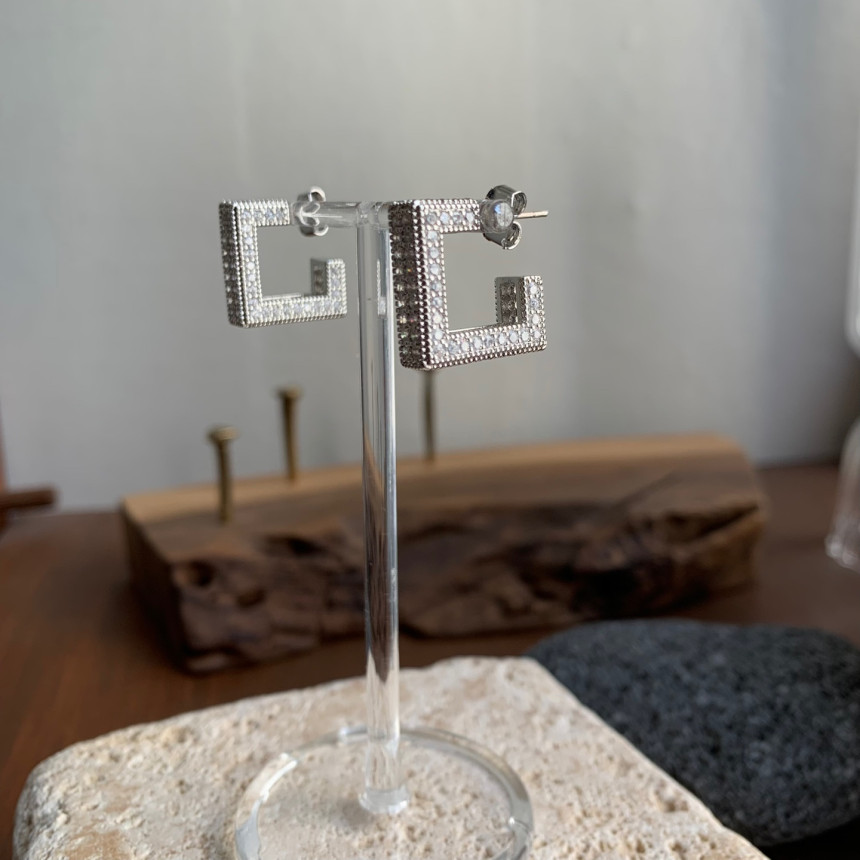 파베세팅큐빅사각링 귀걸이