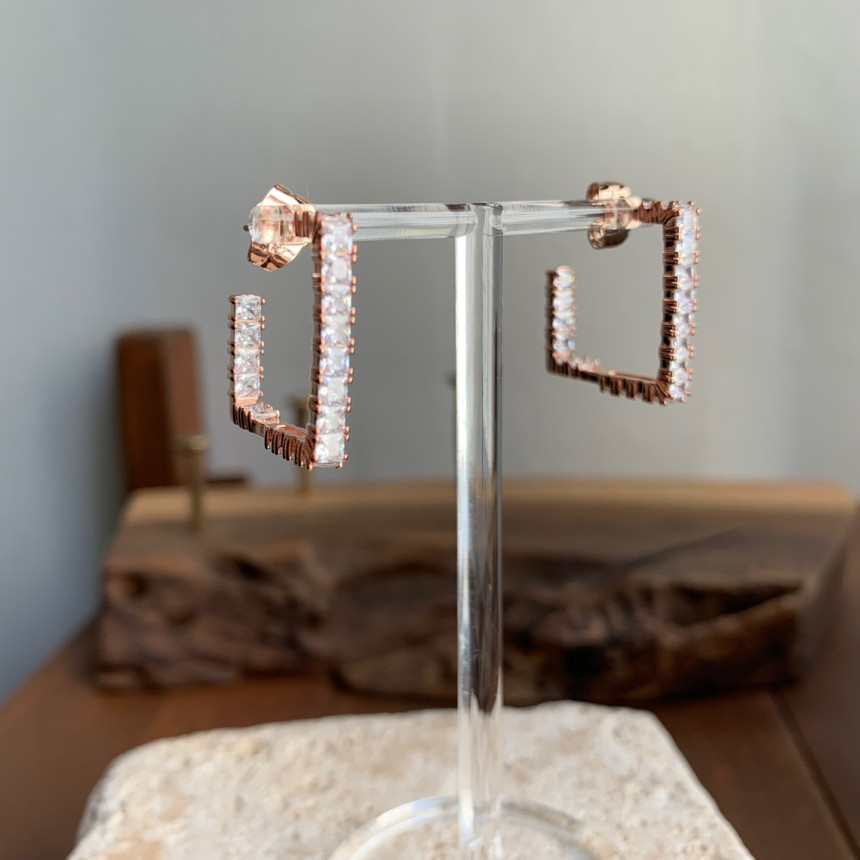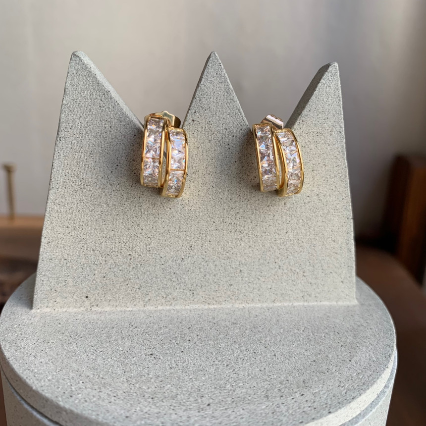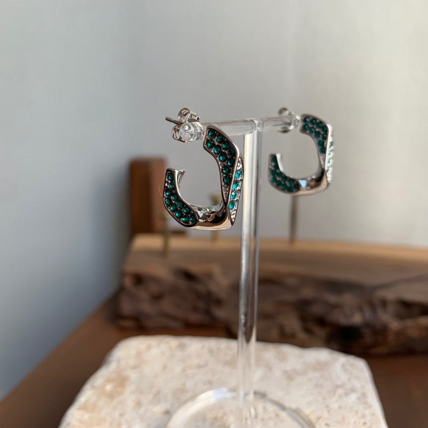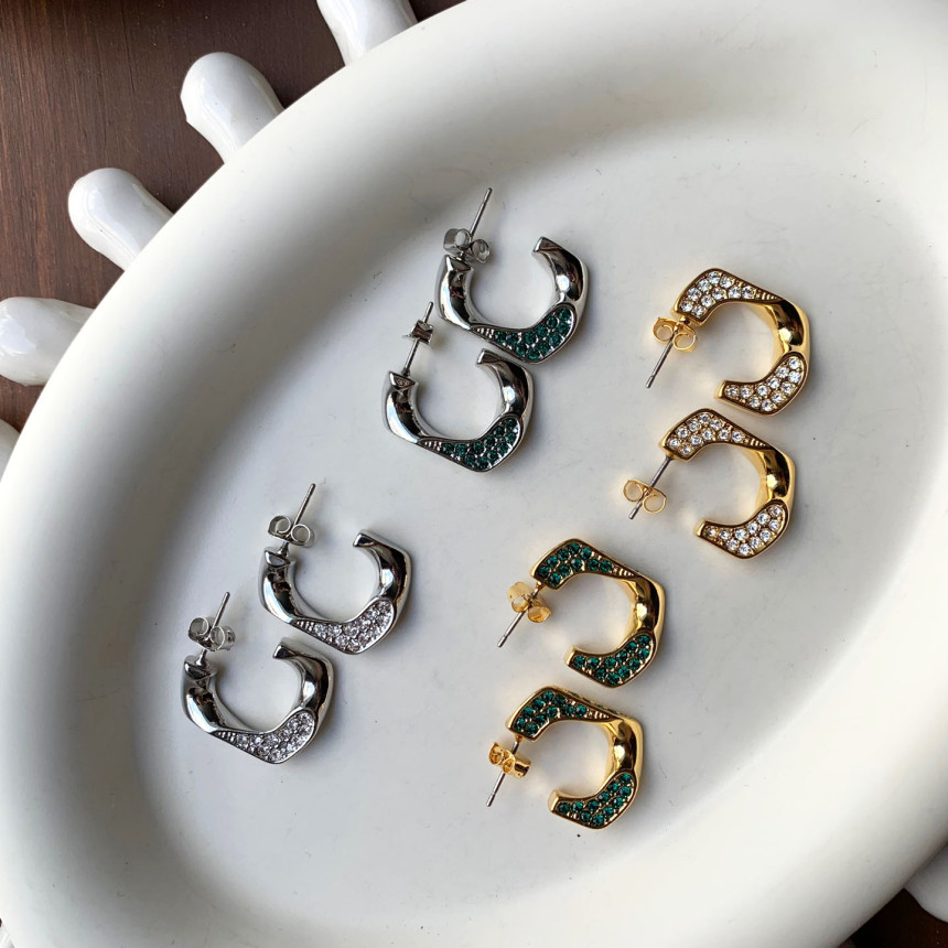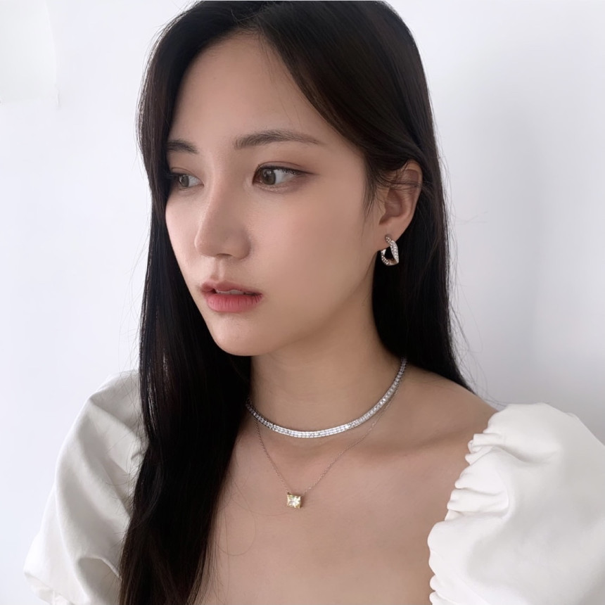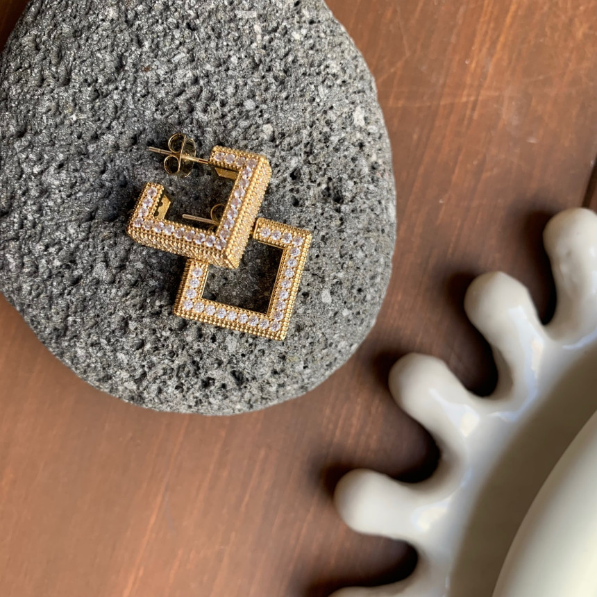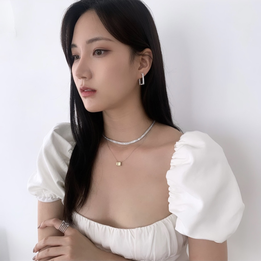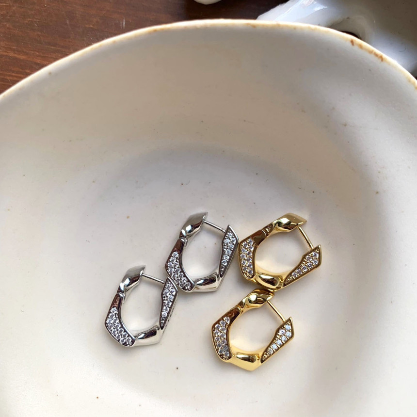 파베세팅큐빅사각링 귀걸이